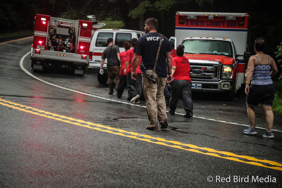 The first incident occurred on the Raven Cliffs trail around 5:45 Friday evening July 31. A hiker hurt his ankle and was unable to walk out of the wilderness area. Fortunately, he was not alone. “His son got out to where he could get phone service to call 911,” says White County Fire Chief Seth Weaver. White County and Helen firefighters responded to the call. They requested assistance from Lee Arrendale Fire and Rescue.