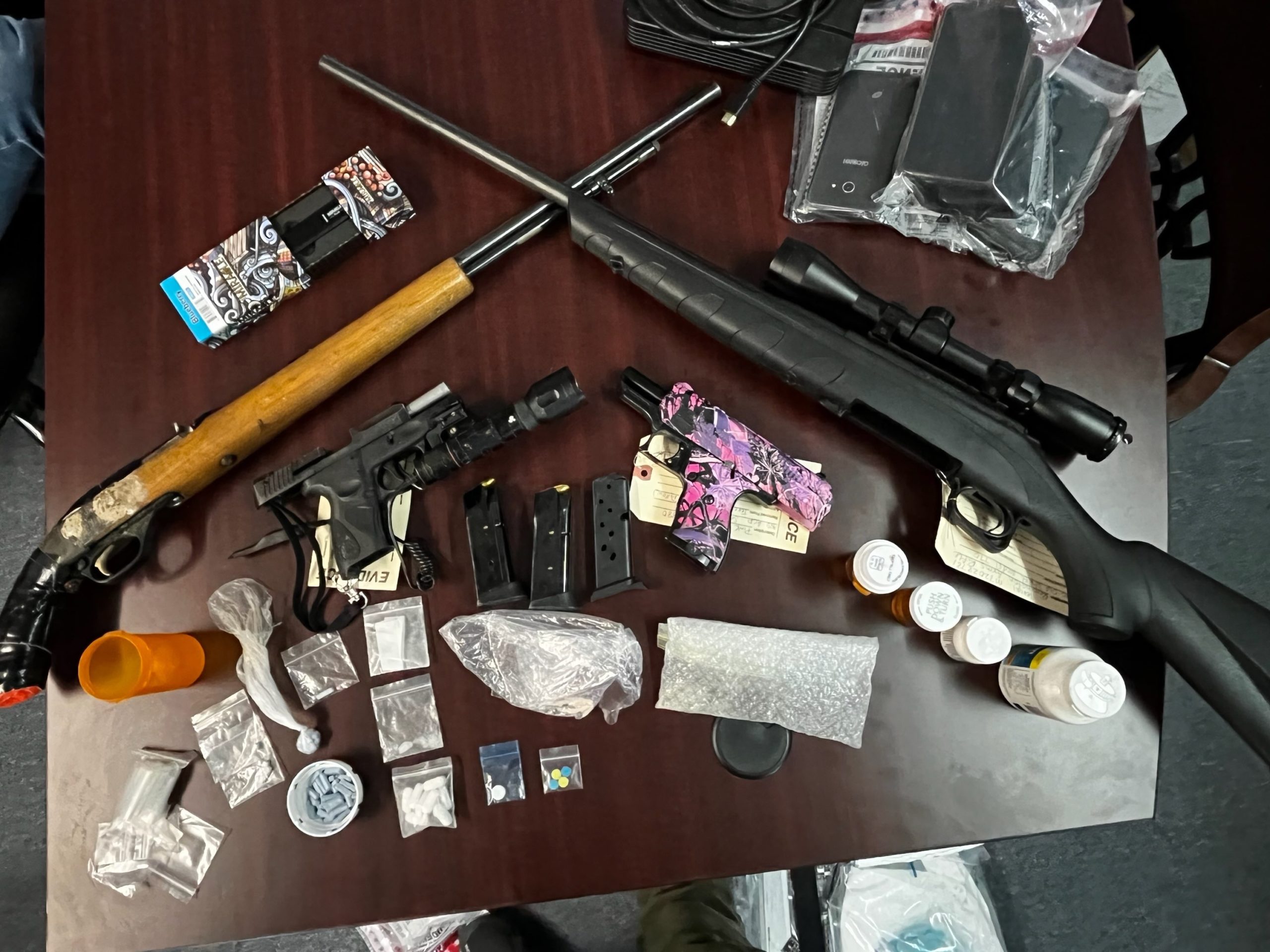 During the search, authorities say they seized a quantity of drugs and firearms and arrested the following: