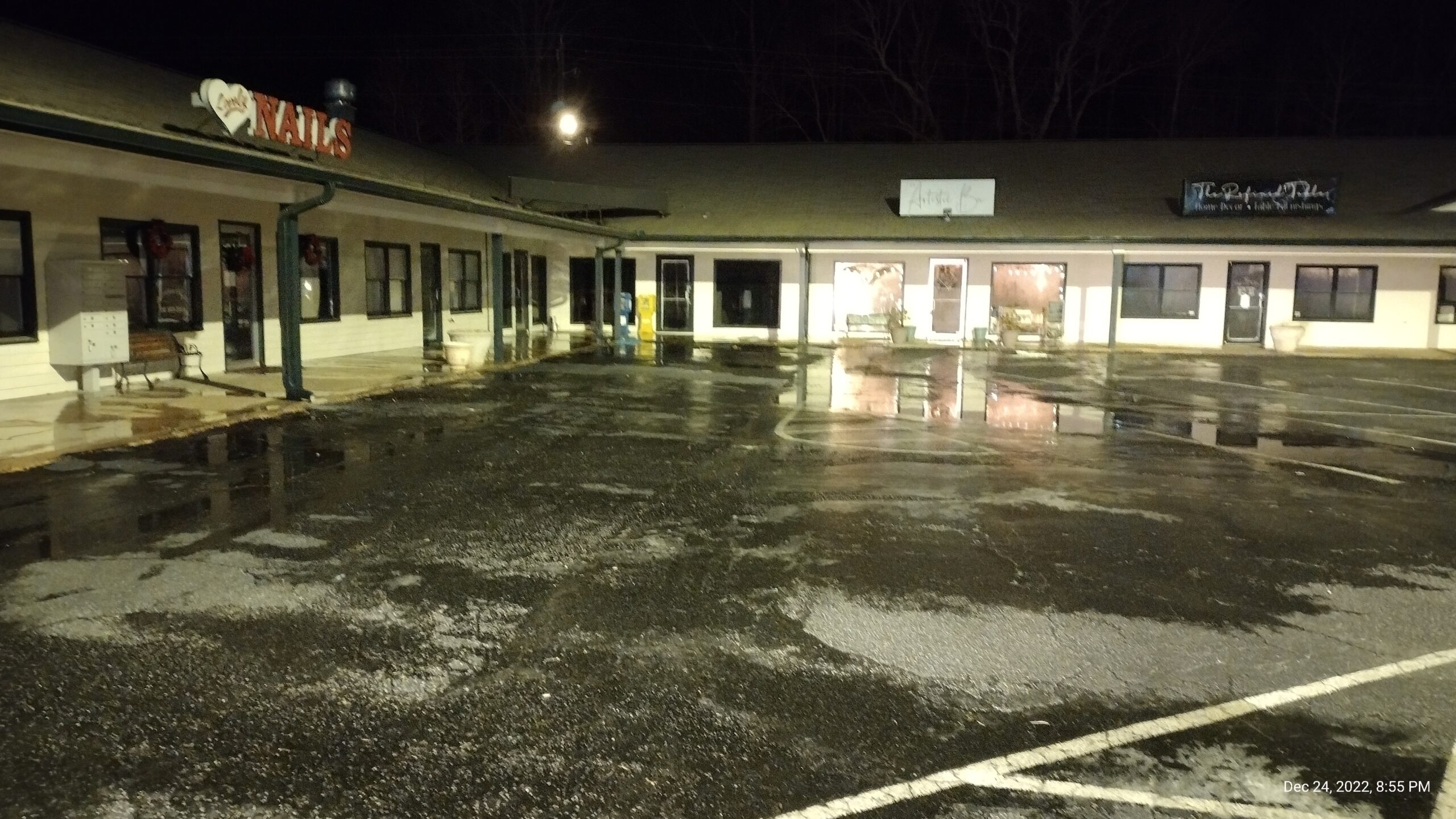 On Christmas Eve, a sprinkler system burst inside a strip mall on Highway 129 south of Cleveland and flooded three businesses. Three vacant units also flooded.