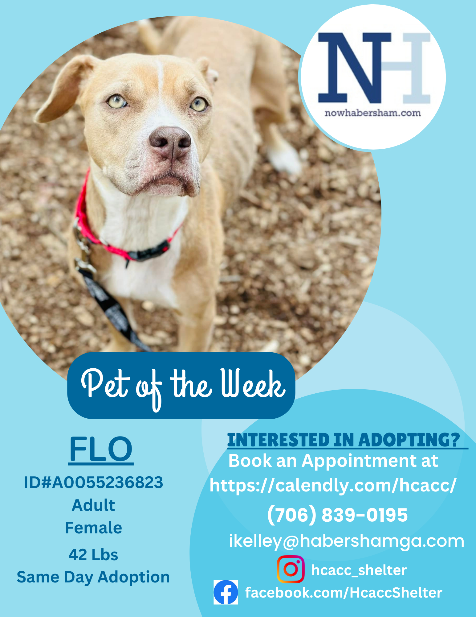 Meet Flo, the resilient 3-year-old, 50-pound pup with a heart as big as her story. Flo found her way to the Habersham County Animal Shelter in early February, an owner surrender who had seen too much hardship.
