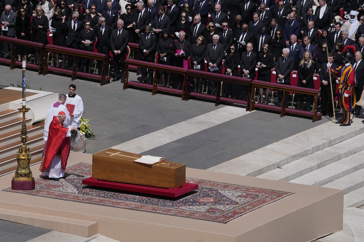 Earlier, Cardinal Giovanni Battista Re, the 91-year-old dean of the College of Cardinals, eulogized Francis as a pope of the people, a pastor who knew how to communicate to the “least among us” with an informal, spontaneous style.