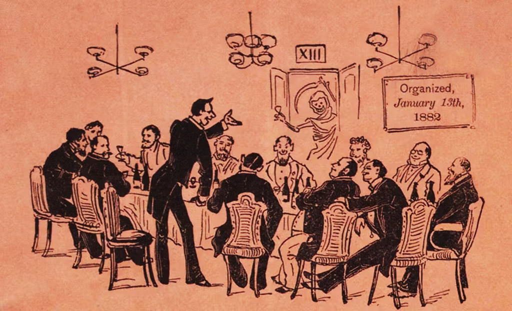 By the mid-1800s, this belief was widespread in all of France and was beginning to travel around the world. One of the more fascinating things to come of this belief is the “Thirteen Club of New York”. This “club” first met on January 13, 1892 and was headed by Captain William Fowler. Captain Fowler had the number 13 show up many times in his life, from where he went to school at Public School No. 13, to fighting in 13 battles in the Civil War. at 8:13PM on that day in 1892, the club met in room #13 of Fowler’s cottage, with 13 men present. Upon entry, they passed under a ladder with a sign that read “Those of us who are about to die salute you!”. They lit 13 candles, had 13 courses of dinner, and had a grand old time. A year later at a meeting, they noted none of the members had died, nor even had serious illness. Former presidents Chester A. Arthur, Grover Cleveland, Benjamin Harrison, and Theodore Roosevelt were all members of the club at some point.
