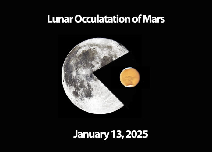 The first full moon of 2025 is here and includes a lunar occultation of Mars! (An occultation is when one object blocks the view of another object.)