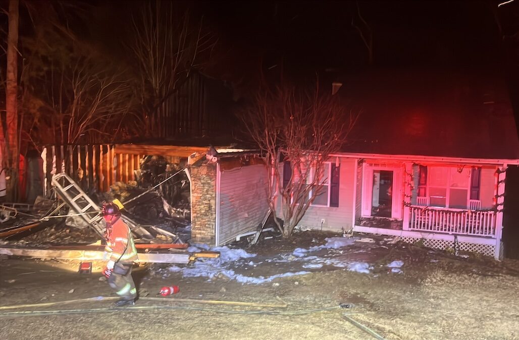 HALL COUNTY, Ga. – Hall County firefighters battled a residential fire Tuesday night that damaged a garage, attic space and destroyed three vehicles, according to Kimberlie Ledsinger, public information officer for Hall County Fire Rescue.