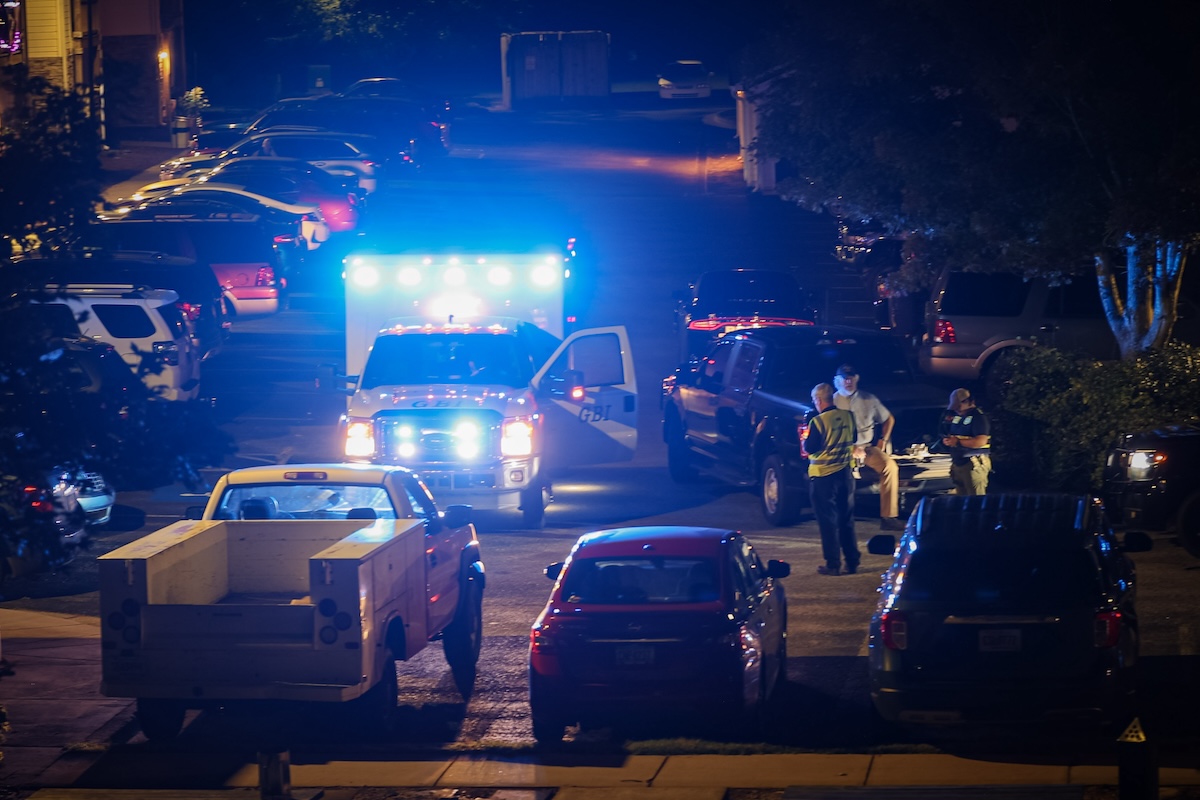 Residents reported hearing a series of gunshots, one reported possibly as many as 20, but authorities have not released any details. Miles says only that Patterson sustained “several” gunshot wounds.