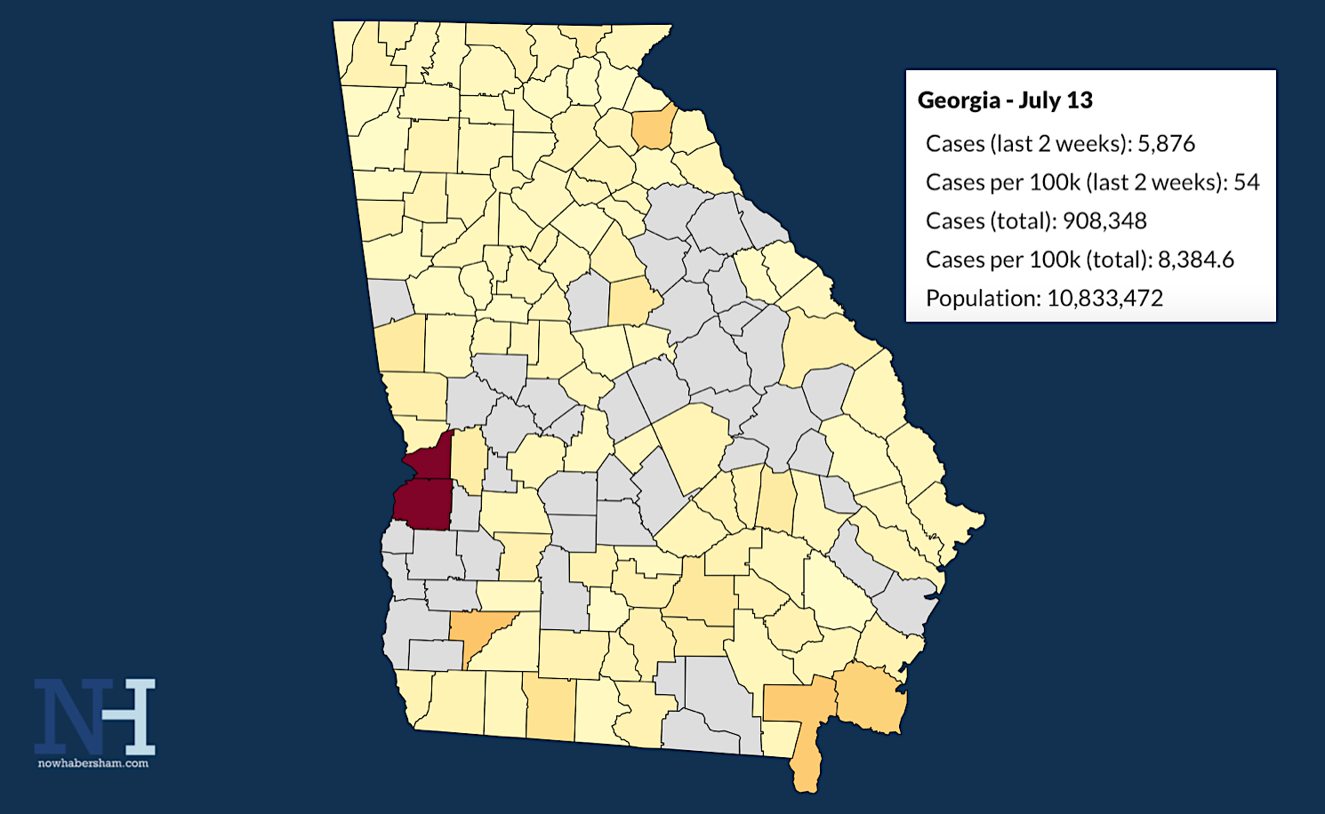 The state, along with 46 others, has seen an increase in COVID infections over the past two weeks, according to New York Times data. Georgia’s 143 percent rise over the last two weeks exceeds the U.S. average of 94 percent.