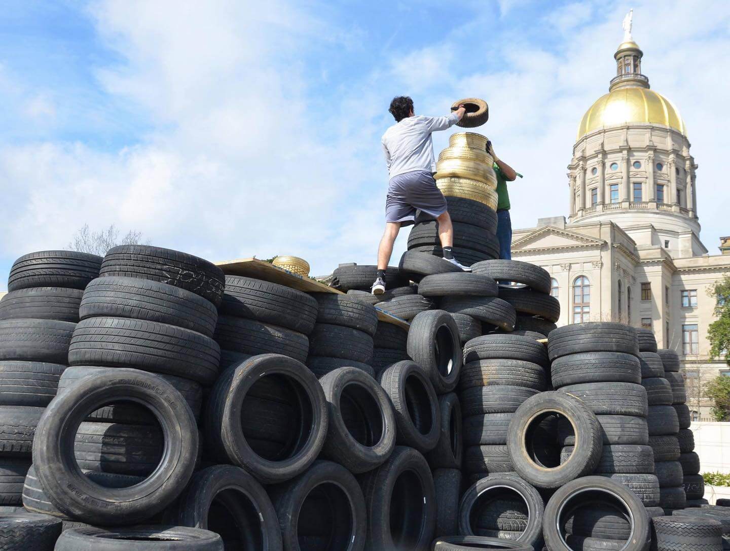 (GA Recorder) – Environmental advocates rounded up 500 scrap tires and set to work building a rubber replica of the Gold Dome in the shadow of the real thing as the 2017 legislative session was underway.