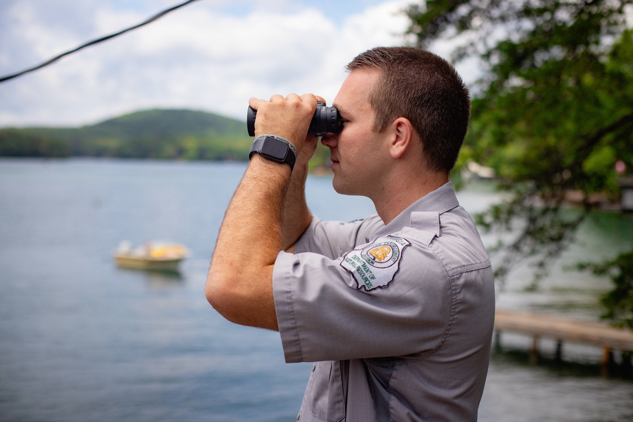 The state’s DNR District 2, where Fleming patrols, covers the northeast corner of the state, from the North Carolina and South Carolina borders to Fannin and Newton counties in the West, and Elbert, Rabun, Hart, and Stephens counties on the east. Fleming’s usual beat is a subsection of the five counties farthest east and north, encompassing Lake Burton (usually quiet) and Talullah Gorge—a regular site of chaos, when hikers get stuck, fall, or burn out on the gorge’s mountainous trails.