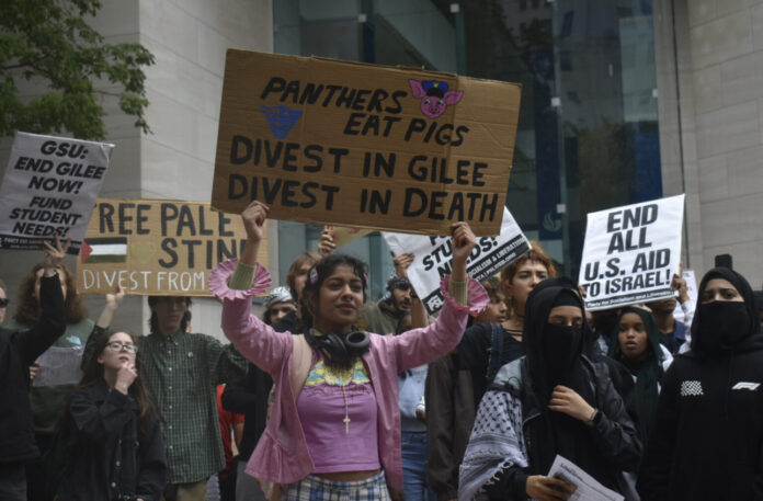 Oct. 2023 file photo. Demonstrators demand Georgia State University drop its affiliation with Israel following the outbreak of war in Gaza. (Ross Williams/Georgia Recorder)