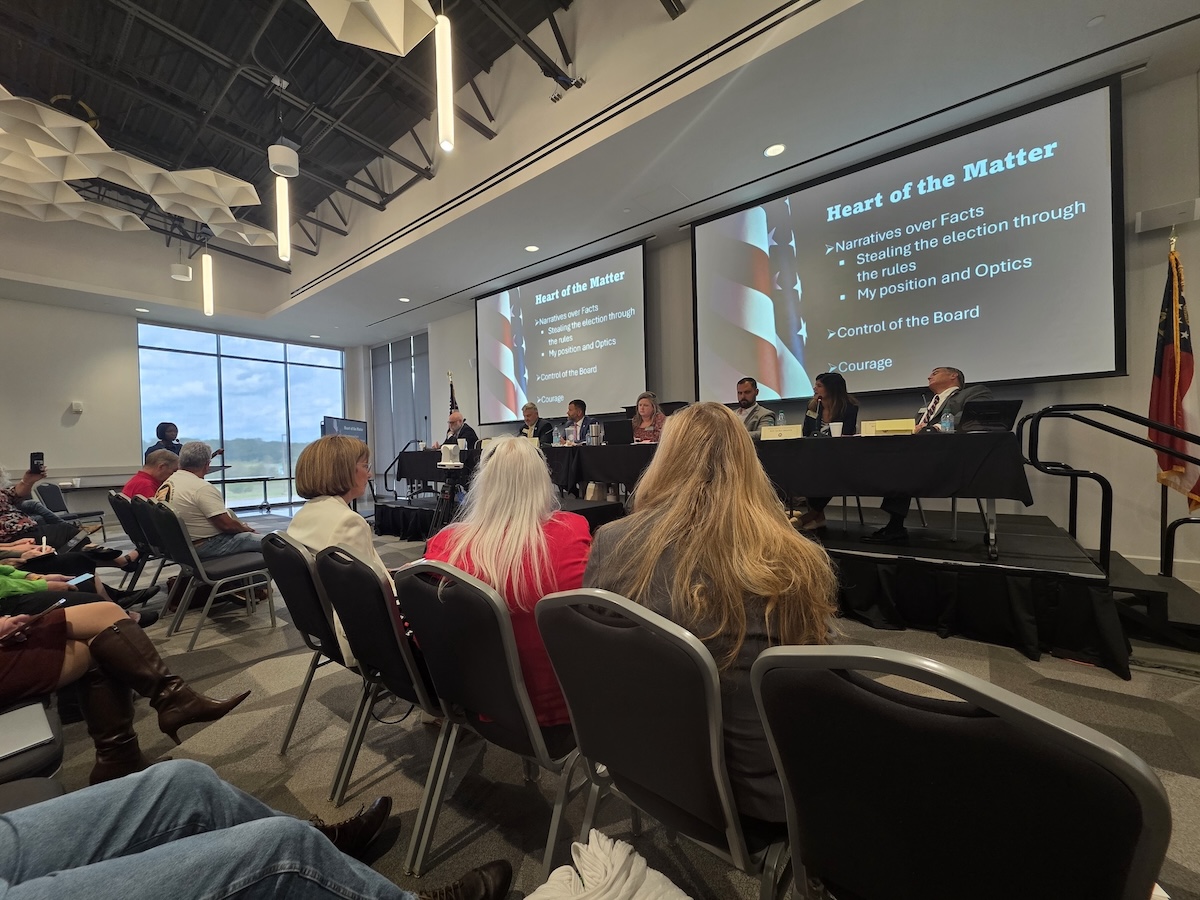 The elections study committee held public hearings across the state, including in Clarkesville. During the August 28, 2025, hearing at North Georgia Technical College, deep divides on the state election board were evident.  (Carly McCurry/NowHabersham.com)
