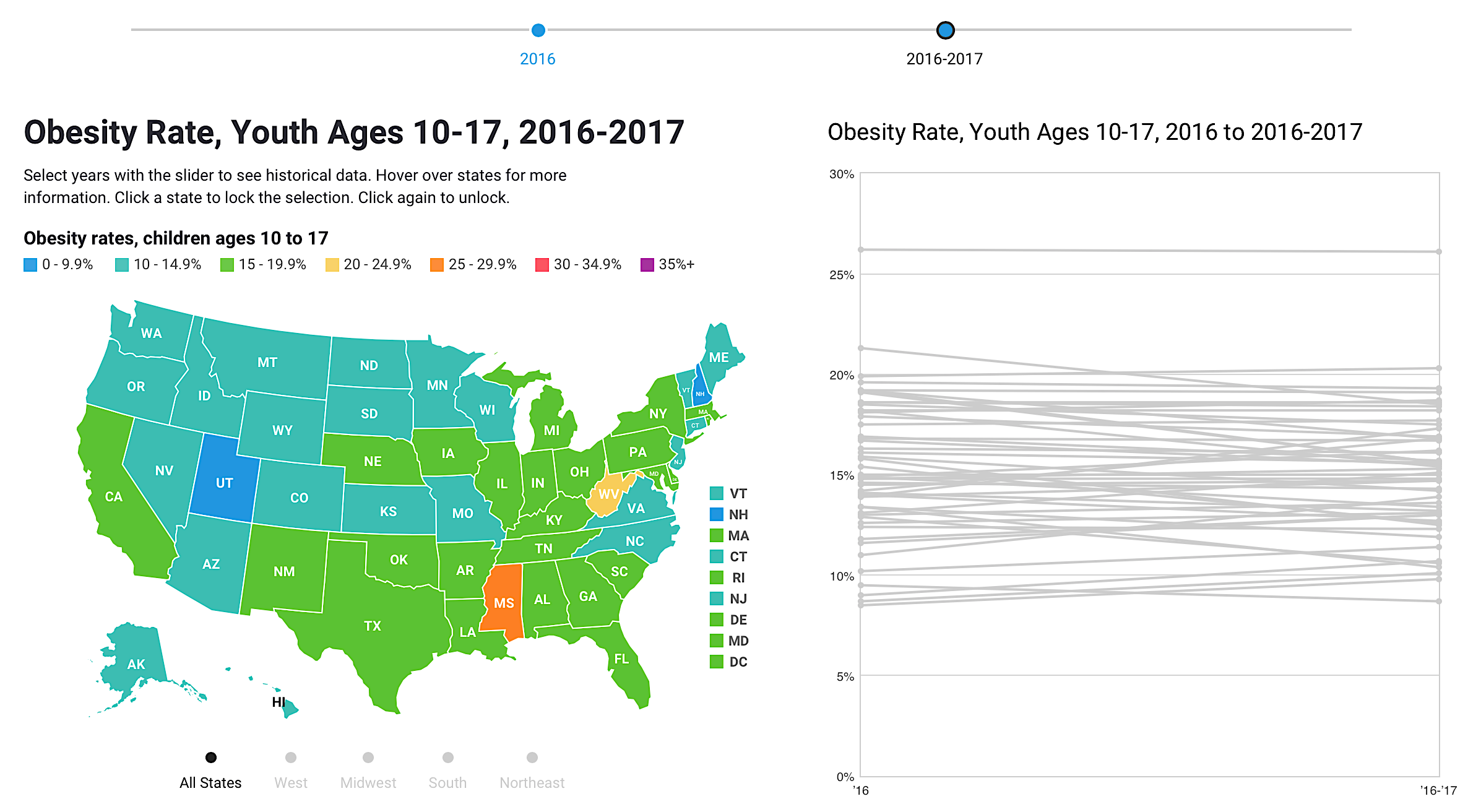 The data on youth obesity come from the 2016 and 2017 National Survey of Children’s Health, along with analysis conducted by the Health Resources and Services Administration’s Maternal and Child Health Bureau.