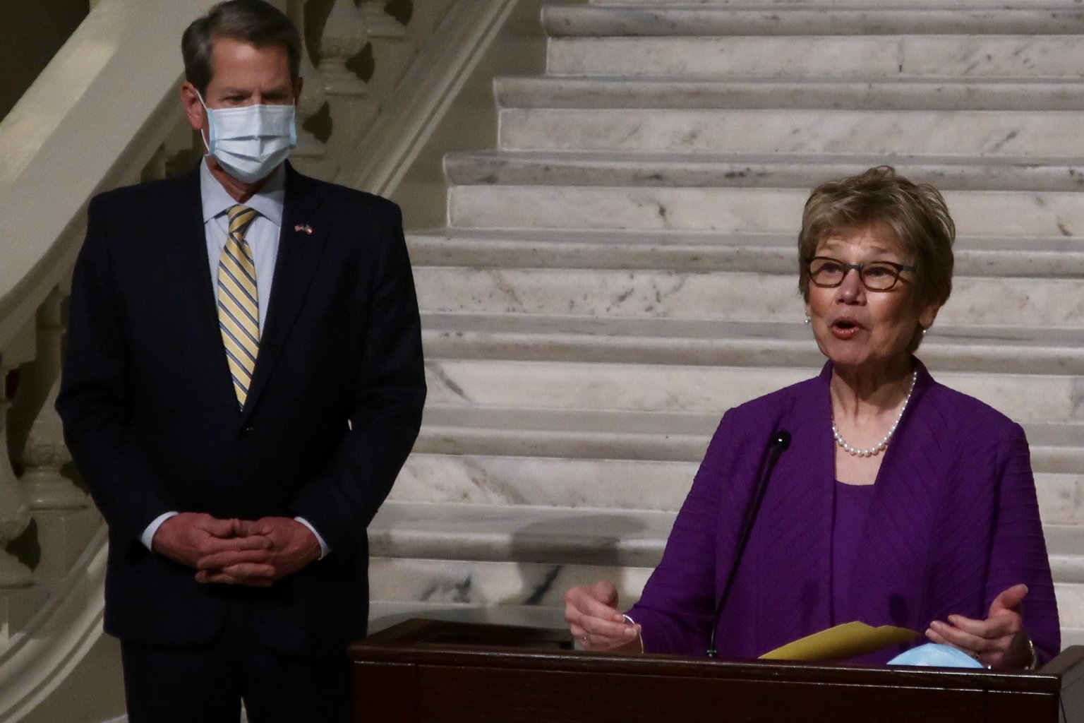 Gov. Brian Kemp and Georgia Public Health Department Commissioner Dr. Kathleen Toomey urged Georgians to continue following safety precautions – including wearing a face mask – since it will be a while before the vaccine is more widely available to the public.