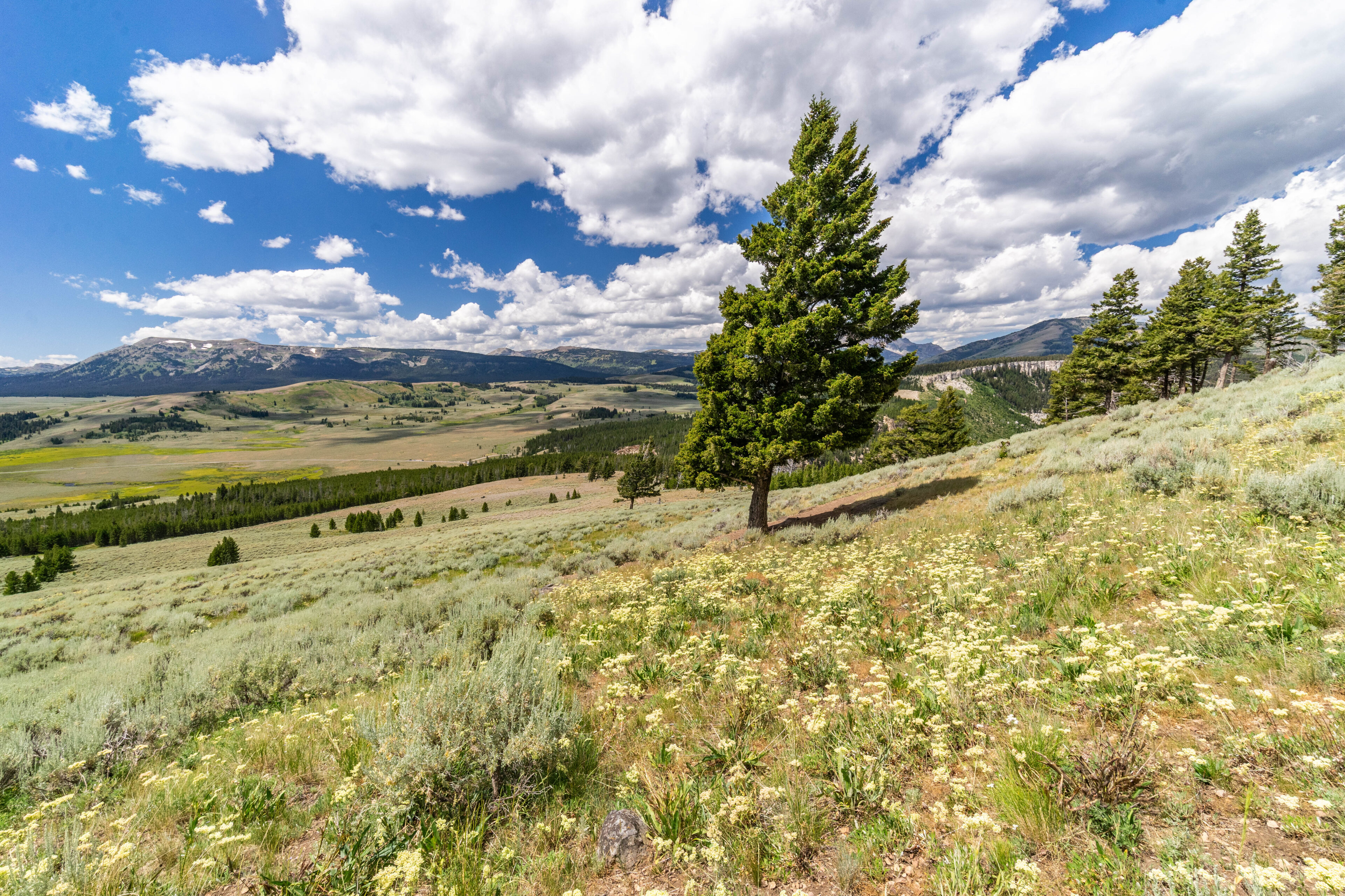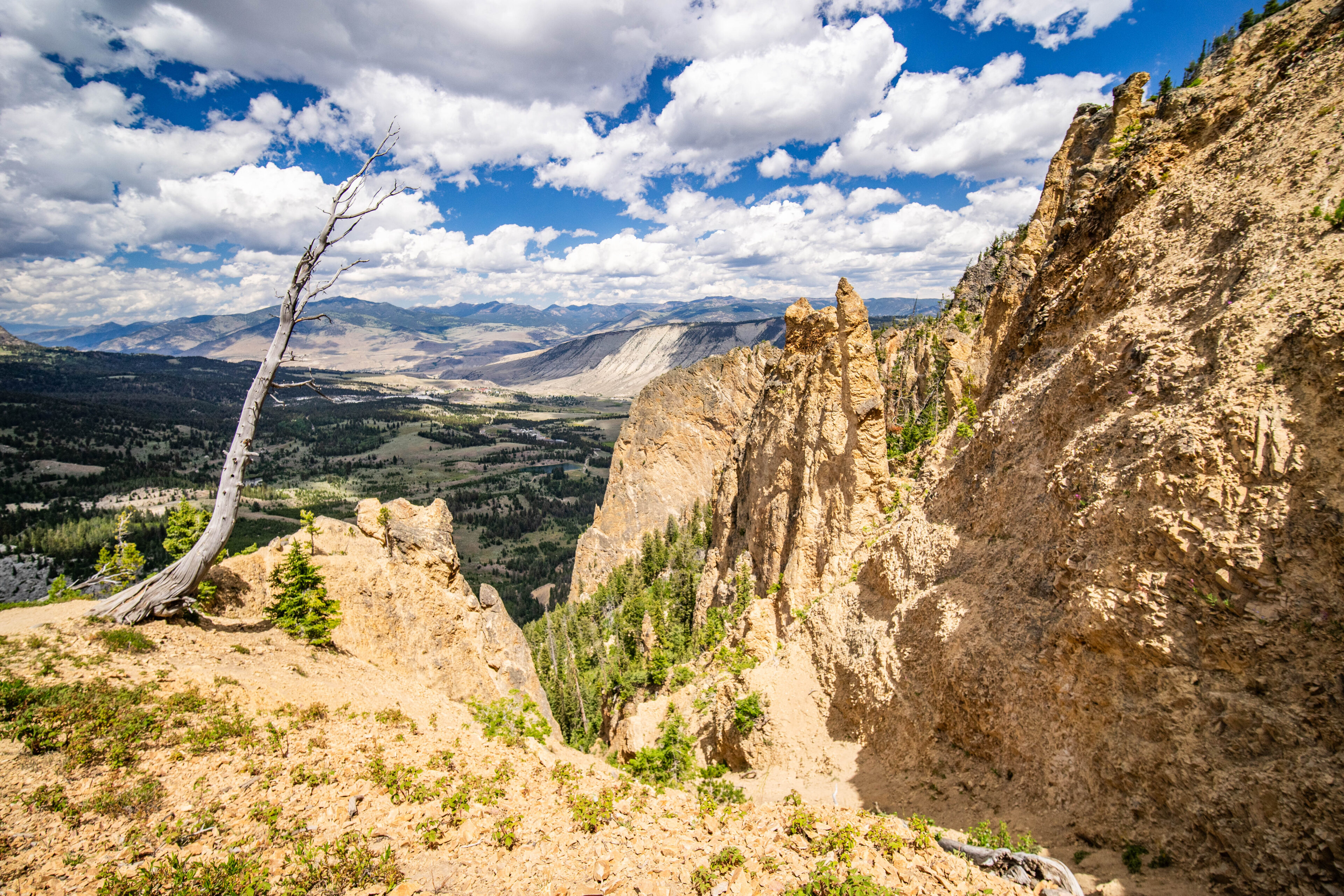 After spending a bit at the top and having a snack, it was time to make the much easier hike down the steep slopes. We stopped once again to admire the view looking over the valley below on the way down, looking deep into the heart of Yellowstone country.