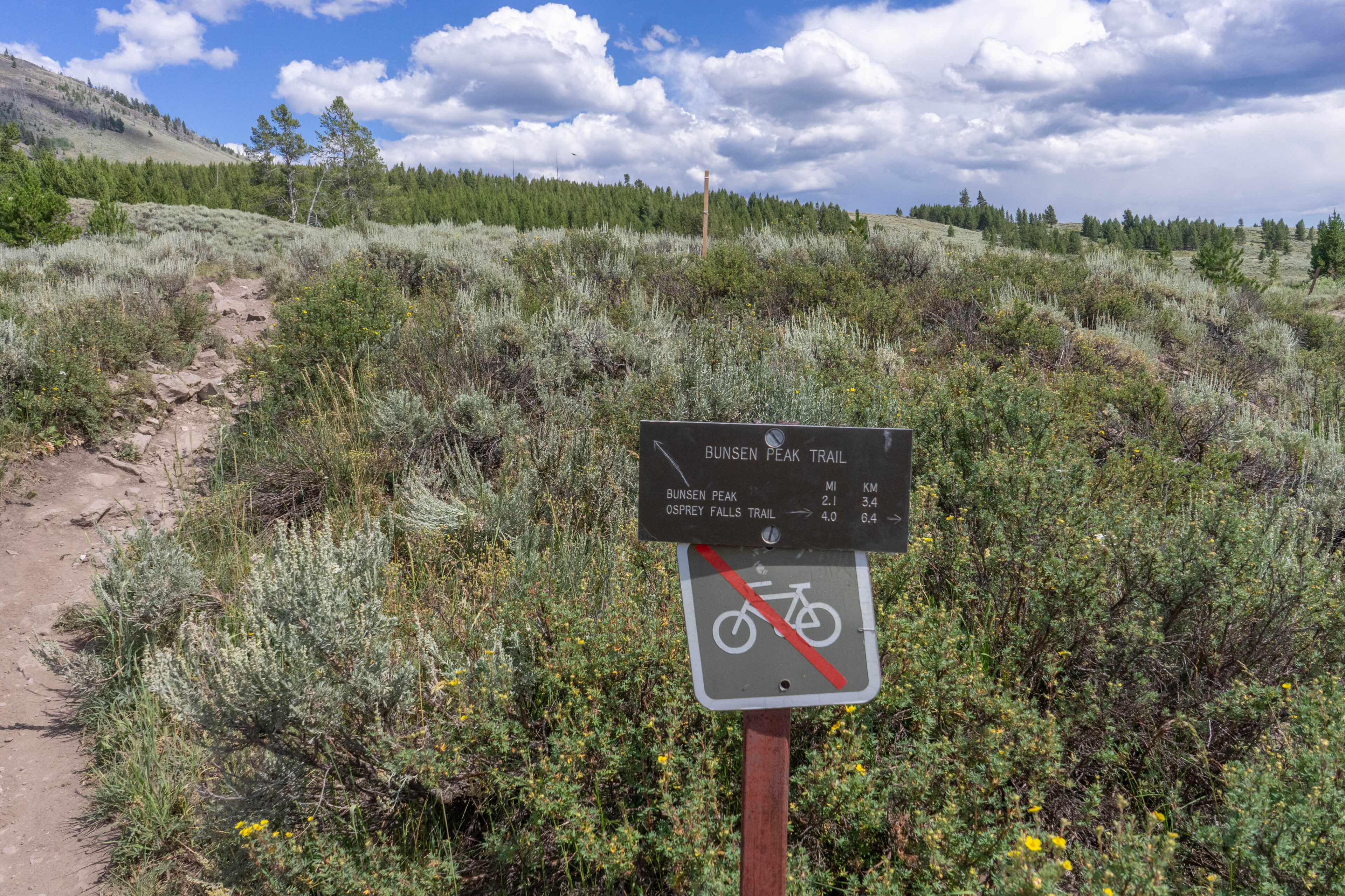 After leaving the Mammoth Hot Springs, we could already see our next target. Bunsen Peak sticks out like a sore thumb as you drive north into the broad valleys of the northern end of Yellowstone National Park. This mountain is some of what remains of the parks rich volcanic past. The igneous rock peak with very few trees near the summit is directly south of Mammoth Springs.