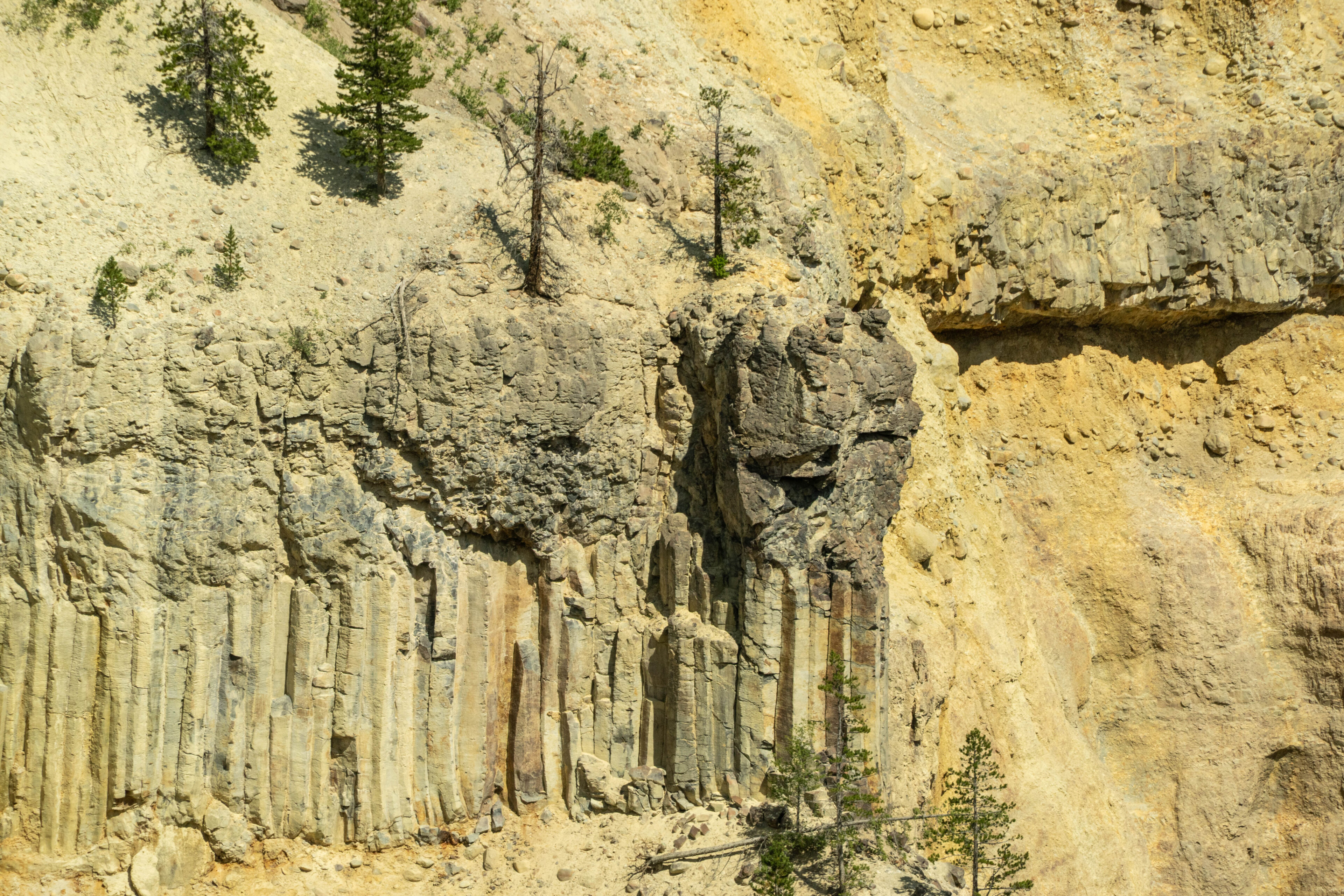 An overview near Tower Junction caught our eye on the drive down, and it is one of the best overlooks for a real glimpse of the park’s volcanic past. Here, columnar basalt is easily visible all over the walls of the canyon. Here, the Yellowstone Canyon comes to an end, but not before cutting through these six-sided rock columns. These rocks have a complicated history, but form from cooling igneous rock. They can be found all around the world, but are on particularly good display here.
