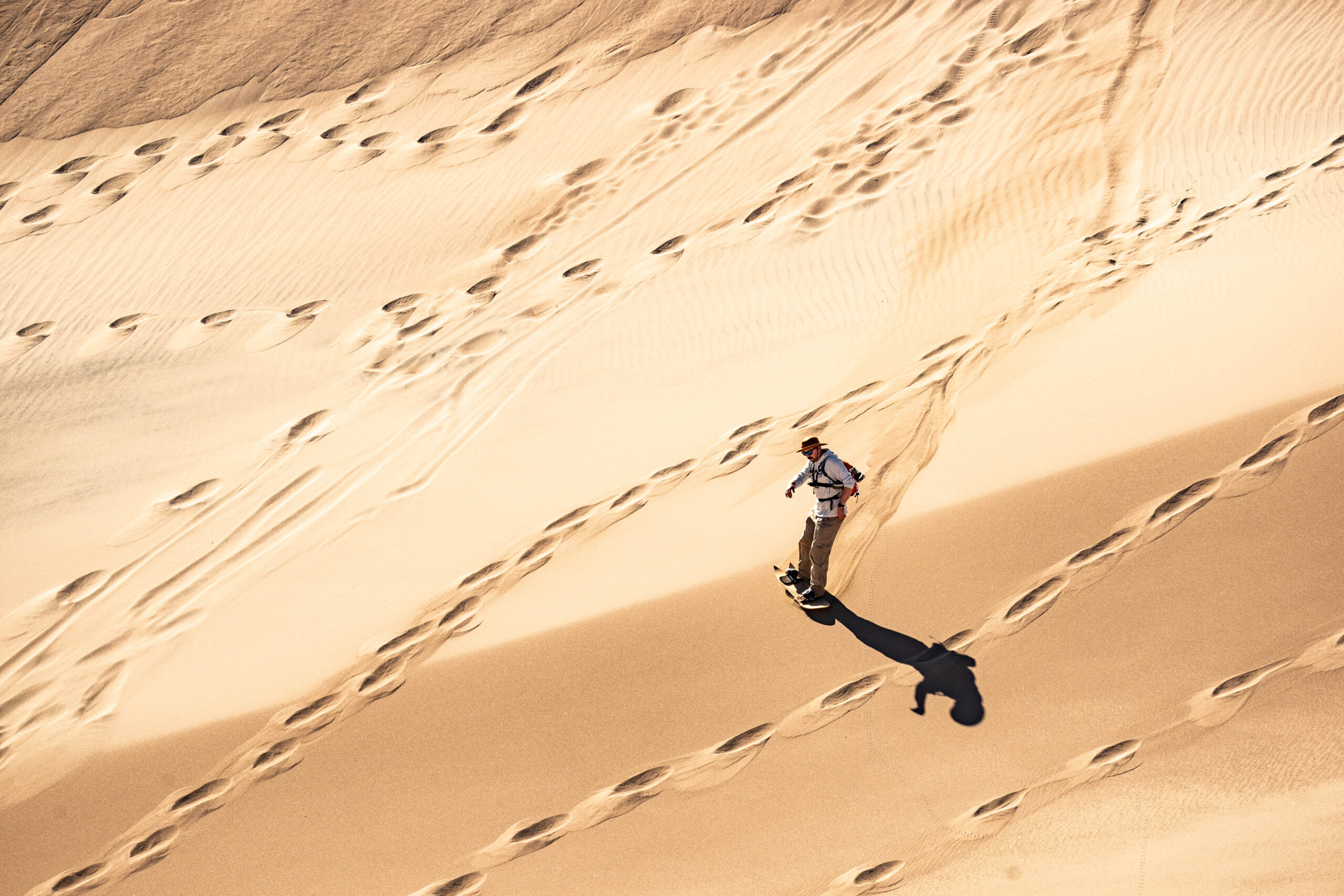 From here, I could see all the people below going about and enjoying their time at the dunes. A popular activity is sandboarding. You can rent either a board or a sled and slide down the steep dune sides to the valleys beneath.