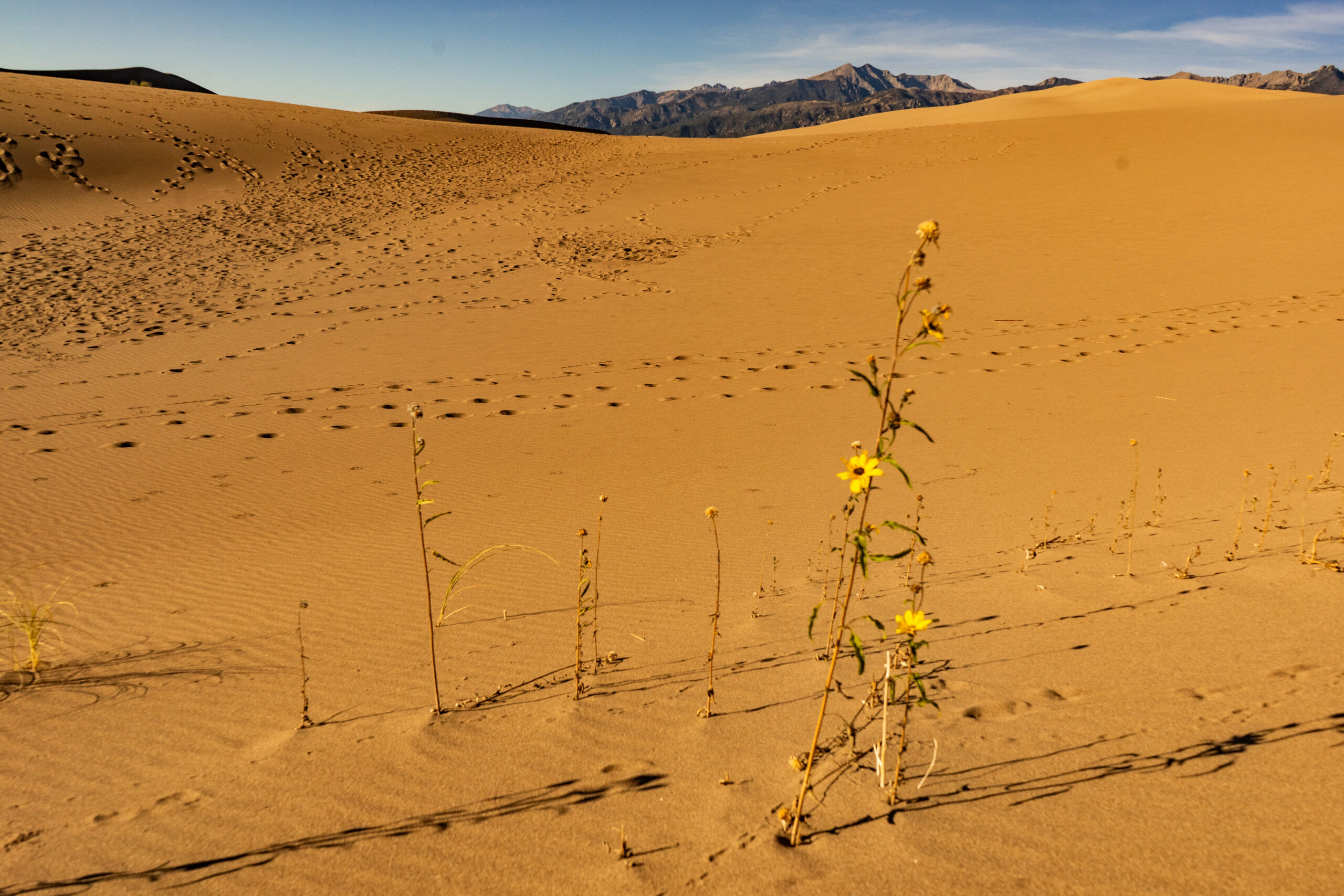 Interestingly, there are plenty of plants growing in these dunes. They can be found in almost any valley, and I even stumbled across a few flowers still blooming in mid-October.