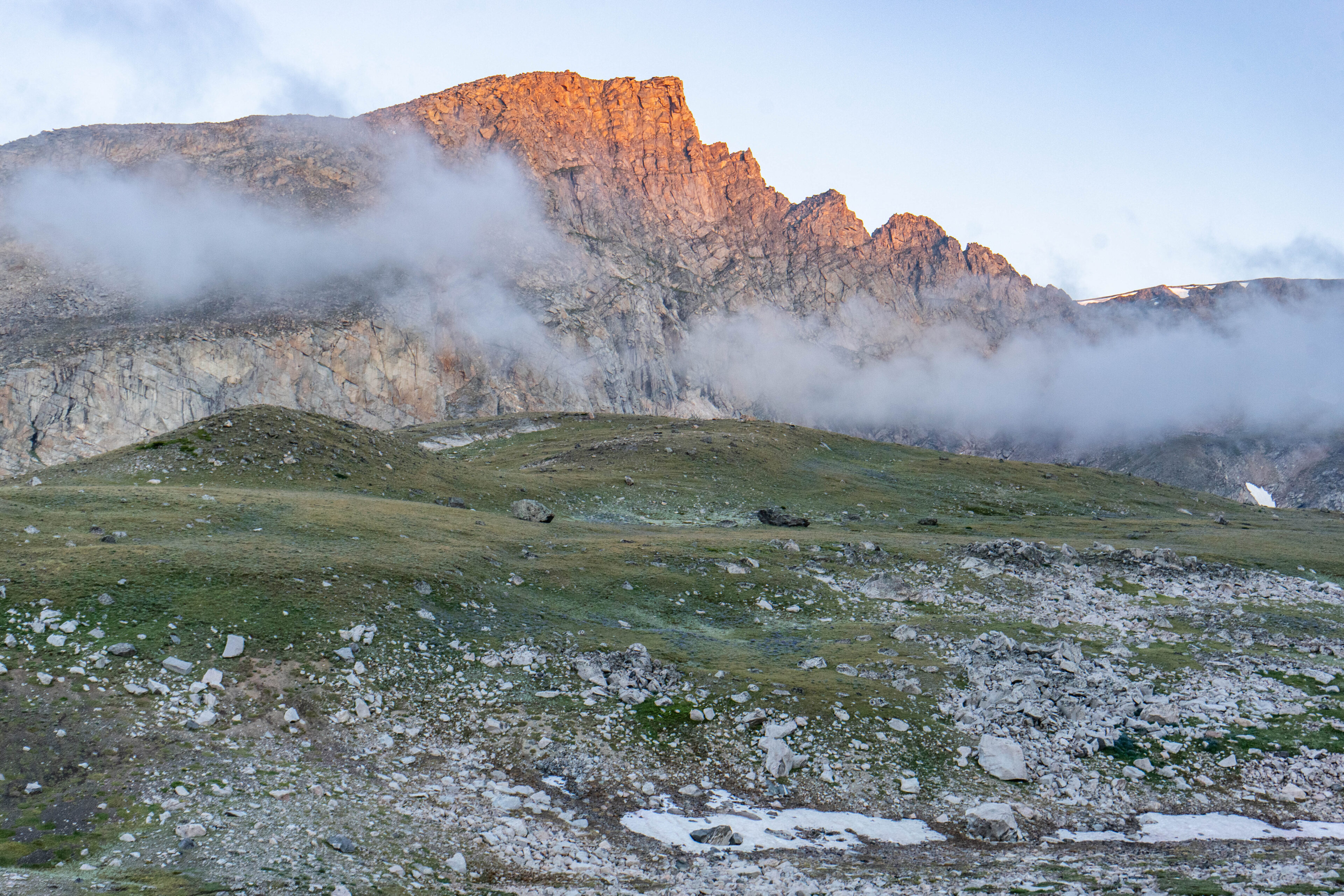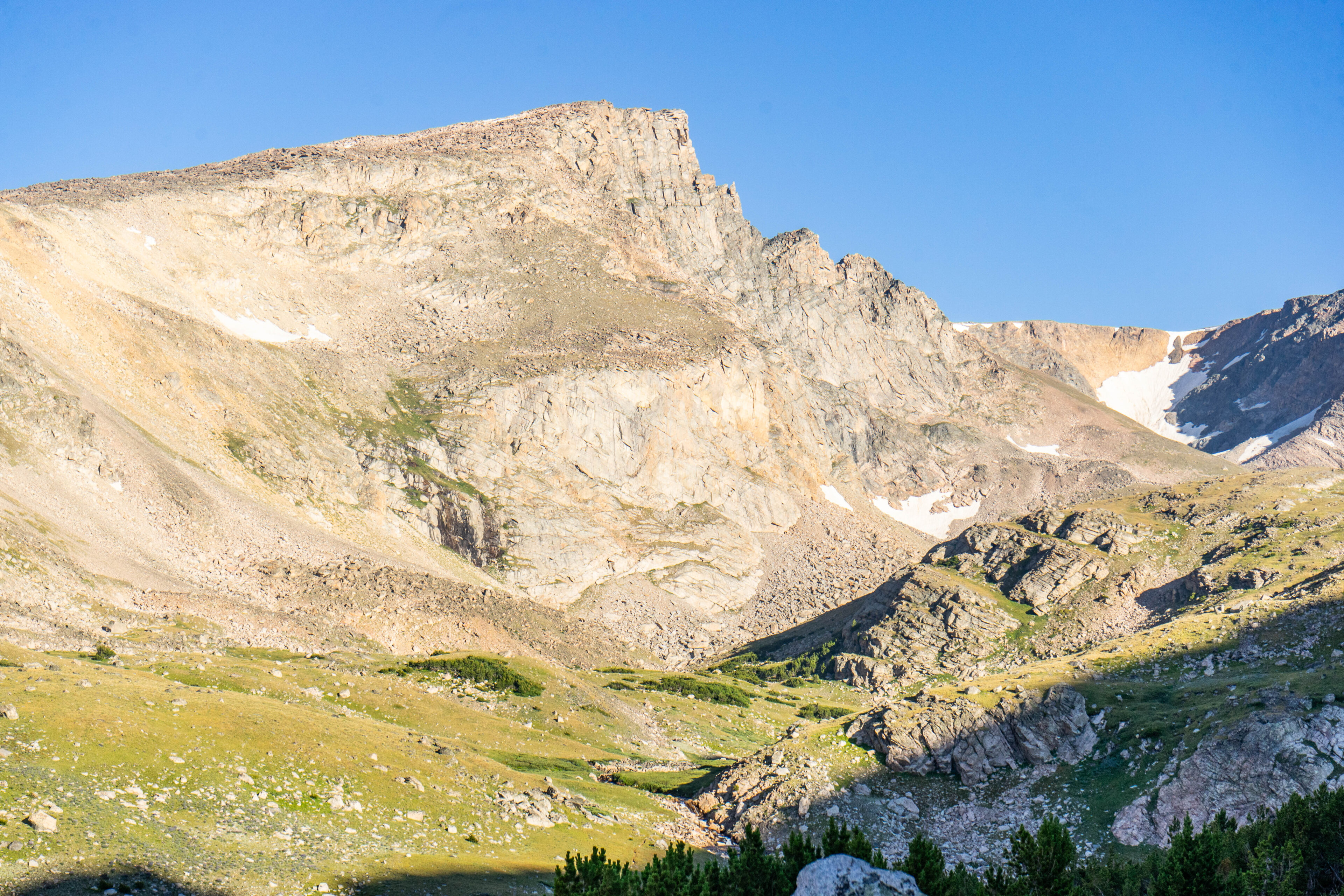 While I spend as much time as possible at higher elevations here on the west coast, the highest that can still possibly put me is 6,000ft. I was about to double that. All week we had slowly been making our way higher and higher through Yellowstone and eventually the Beartooths, but our true goal lay ahead. Neither my buddy nor myself had ever summited a 12,000ft peak on foot. I have been to the top of Pike’s Peak at 14,000ft but only by car. The highest I had personally ever hiked was a touch over 10,000 and certainly nothing as difficult as what lie in store. We packed up and headed backwards and downwards along the trail just as the sun began to hit the ridge to our west.