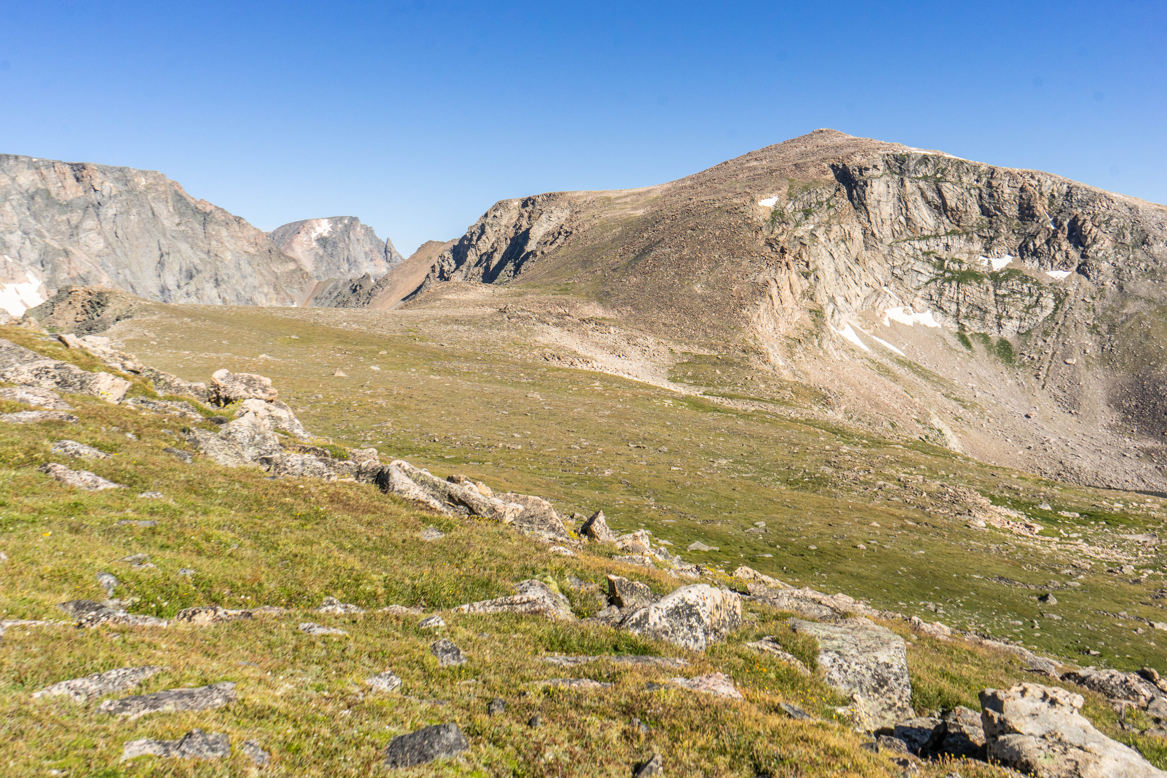 When we finally reached the top of the first rise it put us out about 11,400ft above sea level and I was really starting to feel the elevation. From here, we could see the rest of our root. You may be thinking to yourself ‘that doesn’t look too bad’. This thought briefly went through my mind, but now it was back to a slog back downhill to the saddle below.