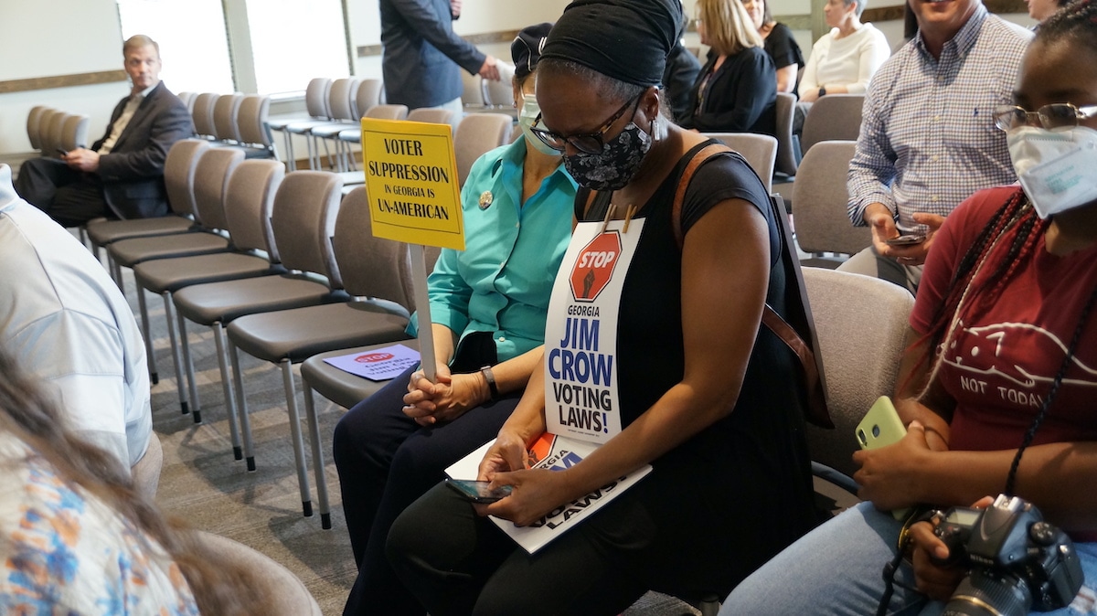 While some Georgians came to support the bills and resolutions, Kemp signed into law; others attended to show their concerns with Georgia’s controversial new voting law. While the protesters were peaceful and did not disrupt the bill signing, their signs reading “Jim Crow voting laws” and “Voter suppression in Georgia is un-American” stuck out among the crowd. Kemp responded to the protestors present, saying, “that bill makes it easy to vote and hard to cheat in Georgia.”