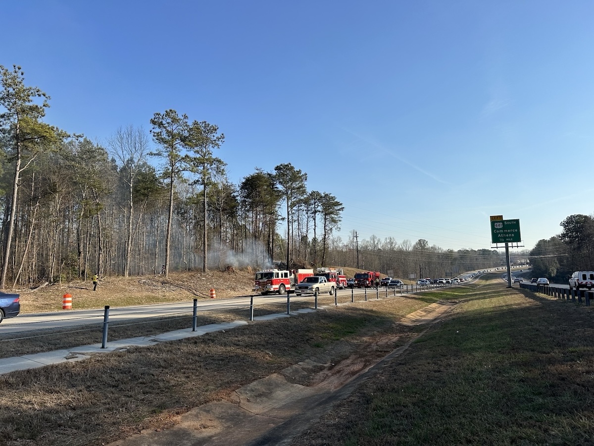 At 4:10 p.m., firefighters from Habersham County, Cornelia, and Baldwin responded to the fire between Old Cleveland Road and the GA 385 (Cornelia) exit.