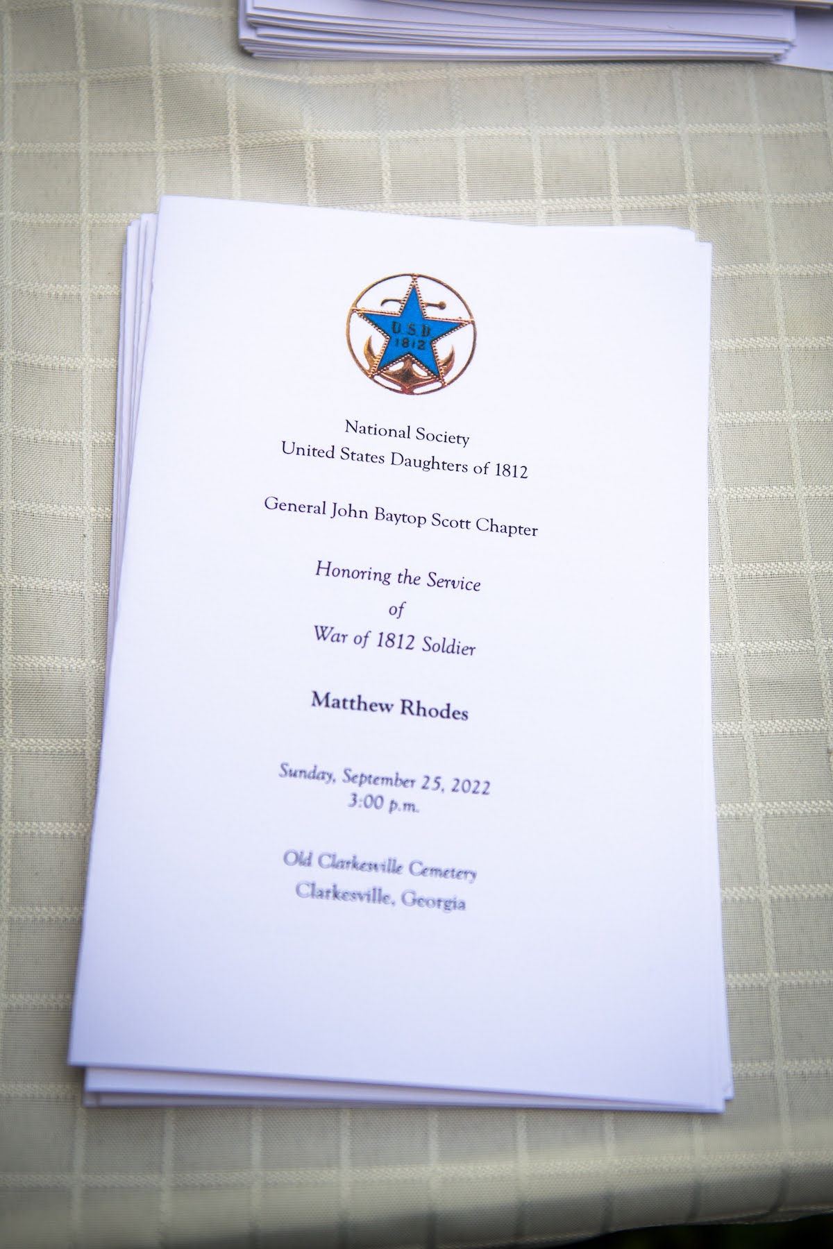 Hosted on Sept. 25 by the National Society United States Daughters of 1812, General John Baytop Scott Chapter, members of several other organizations were in attendance, including the Tomochichi Chapter National Society of the Daughters of the American Revolution; Jamestowne Society-First Georgia Company; National Society Colonial Dames XVII Century; Bartram Trail of the Georgia State Society Daughters of the American Colonists; Georgia Society Sons of the American Revolution Color Guard; Georgia Branch National Society Sons and Daughters of the Pilgrims.