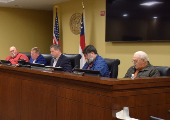 Members of the Habersham County Board of Commissioners, from left, Bruce Palmer, Bruce Harkness, Ty Akins, Dustin Mealor, and Jimmy Tench. (Jerry Neace/NowHabersham.com)