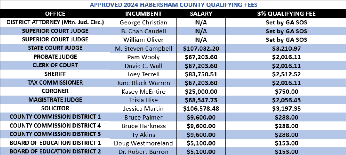 After amending their previous vote, the Habersham County Commission set the new qualifying fees.