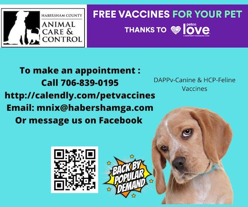 Habersham County Animal Care and Control is providing free vaccinations for area pets through a partnership with the nonprofit animal welfare foundation, Petco Love.