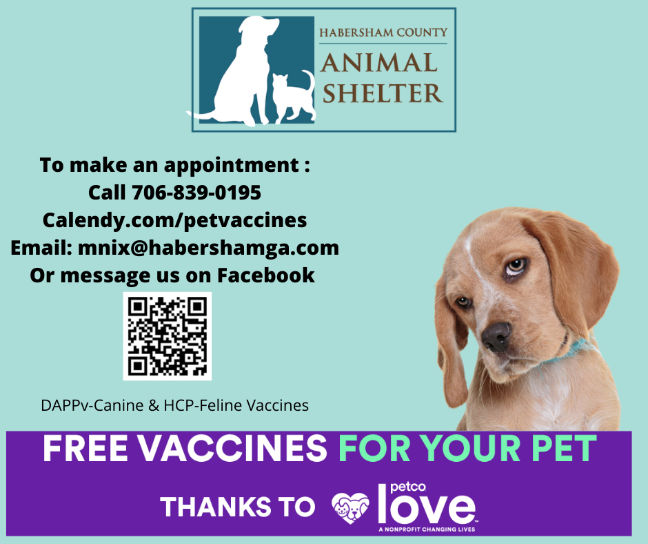 The shelter has recieved 1,000 vaccines to administer to Habersham’s animals, completely free of charge, thanks to a program from Petco.