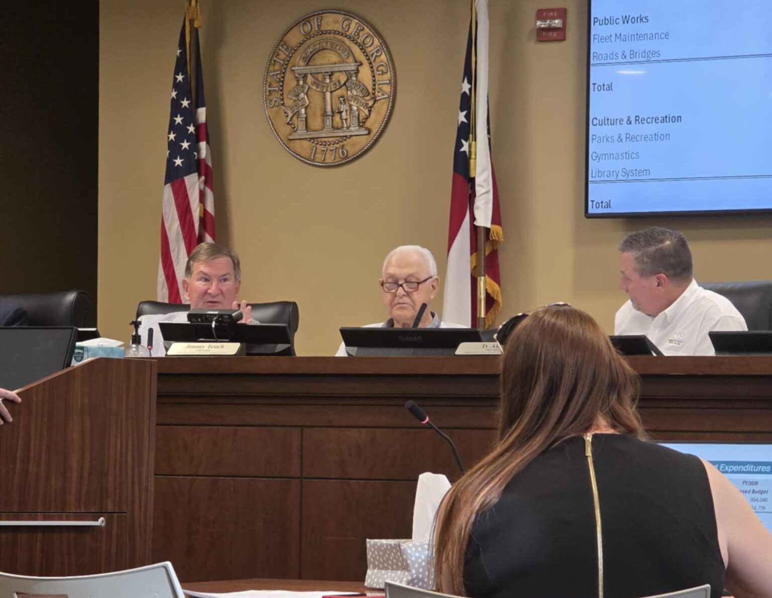 Commissioners Ty Akins, Kelly Woodall, Jimmy Tench, Dustin Mealor, and Bruce Harkness used the session to present budget goals focused on reducing overall spending and reprioritizing capital projects. The proposed total budget across all funds stands at $80.25 million, down 5.38% from the previous year.