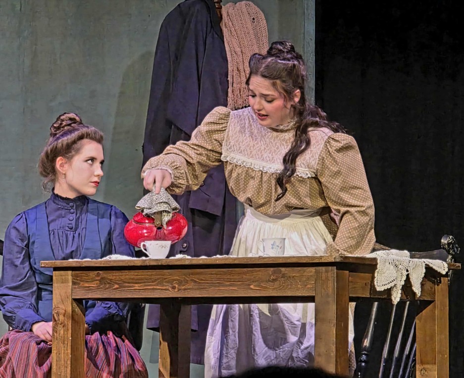 From the moment Christmas music greets the audience, the tone is clear: this is a traditional, literary Christmas show. The opening scene unfolds with deliberate background acting, soft lighting, and an ensemble that makes the modest stage feel unexpectedly lived-in. Transitional singing replaces elaborate scene changes, creating a kind of musical narration that keeps the story moving without ever rushing it.