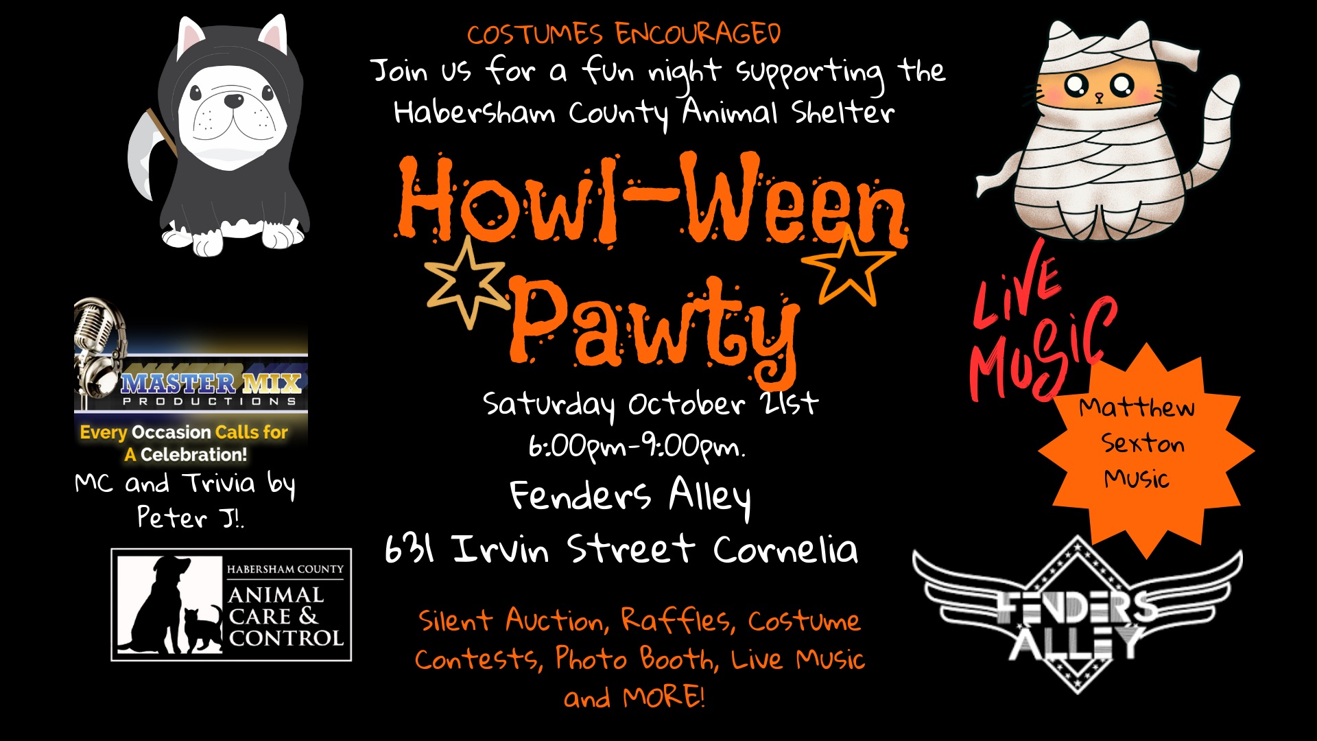 Habersham County Animal Care and Control (HCACC) will host a “Howl-Ween Pawty” fundraiser this evening, Saturday, Oct. 21. The event will be held at Fenders Alley in Cornelia from 6 to 9 p.m.