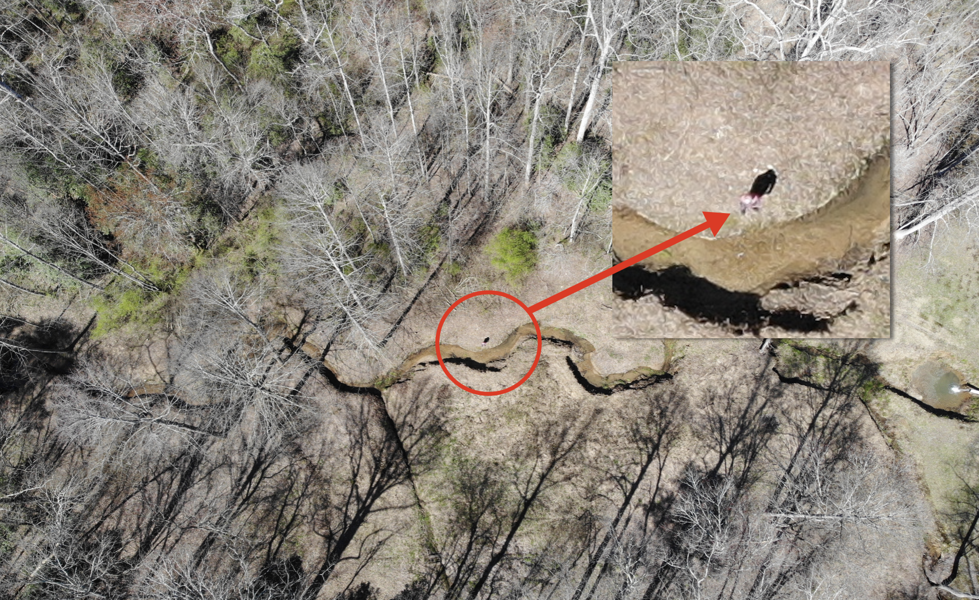 The drone’s camera spotted the boy at the same time as ground personnel saw him near a creek on nearby property, a short distance from a pond.