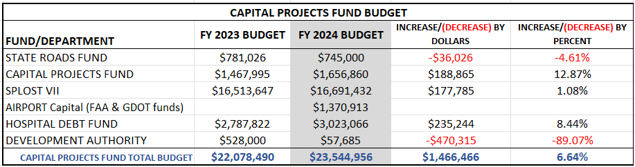 “The SPLOST/Grant/Special Revenue/Enterprise Funds are self-supporting and are not funded by (property) taxes and have an estimated revenue stream that will support those funds.”