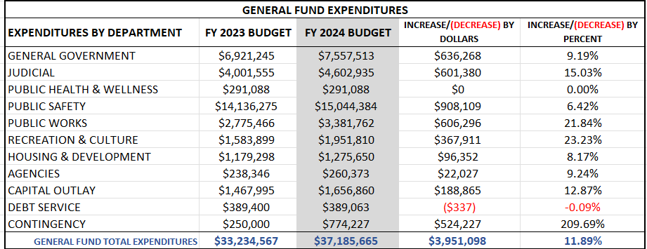 At the end of March, all of the departments submitted and presented $42,674,969 in General Fund budget requests. The finance department has worked with department heads since that time and has cut $5,489,304 of those requests.