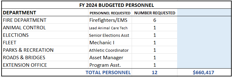 Sims adds, there is a 3% merit increase “for employees based upon their annual review date, which is staggered throughout the year.” He adds that this is less than surrounding counties which budgeted 5% increases for their employees even after pay study adjustments were made last year.