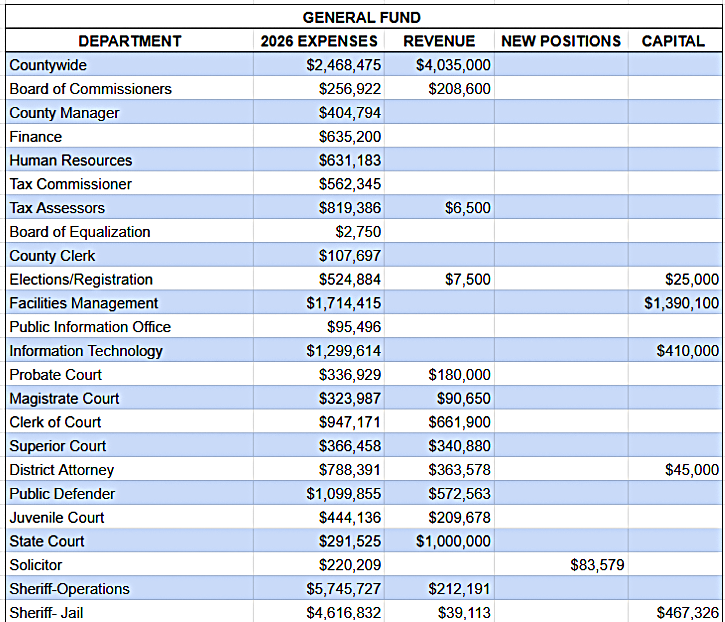 Interim County Manager Tim Sims pointed out that the 2026 budget is inline with the 2025 budget. The original numbers reported were inaccurate due to the way the Georgia Finance Officers Association (GFOA) requires budget documents to be reported.