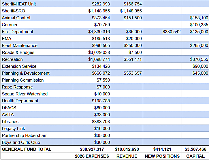 The Habersham County budget review meetings have come and gone and it appears that no new spending maybe on the horizon. A total for the Habersham general fund requests are approximately 0.6% lower than 2025.
