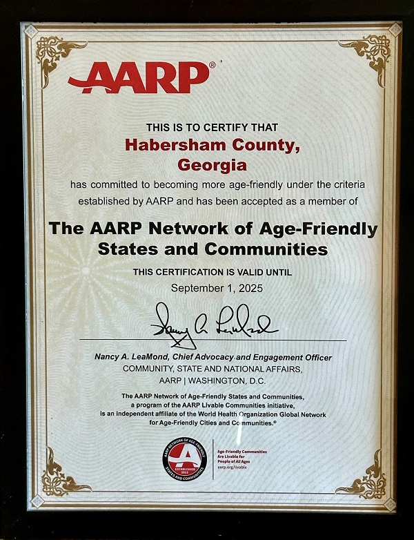 Habersham County has been named by AARP as an Age-Friendly Community, one of 12 counties in Georgia to receive this designation.