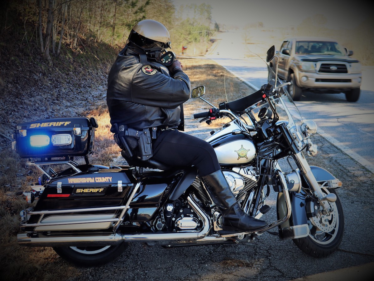 “Today, I’m riding our 2016 Harley-Davidson Road King,” Trammell said. “The sheriff was kind enough to go out and do a very, very diligent hunt for a motorcycle that was not only cost-effective for our taxpayers but also something that actually works really, really well, that is really, really well put together and well maintained. And it’s something that we can use out here that’s different than that patrol car. Everybody sees the patrol car sitting on the side of the road, and they think, ‘Oh, I better slow down,’ but nobody’s really looking for the motorcycle anymore. And that’s just a new avenue that we’re trying to do to make sure that the people are actually obeying the laws, not just when they see that patrol car sitting on side of the road, but anytime. Our main goal is to gain this voluntary compliance to our Georgia traffic laws and that’s what we aim for is voluntary compliance.”
