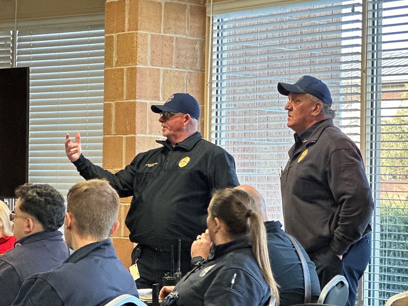 After the training, personnel and college officials held a debriefing to discuss what went well and what could be improved for the future.
