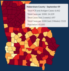 On Sept. 2, Habersham County hit a record high for its daily count of new COVID-19 cases—160 confirmed cases of COVID-19 within the county. Over the past two weeks, the Georgia Department of Health reports that Habersham saw 527 new cases in adults and children.