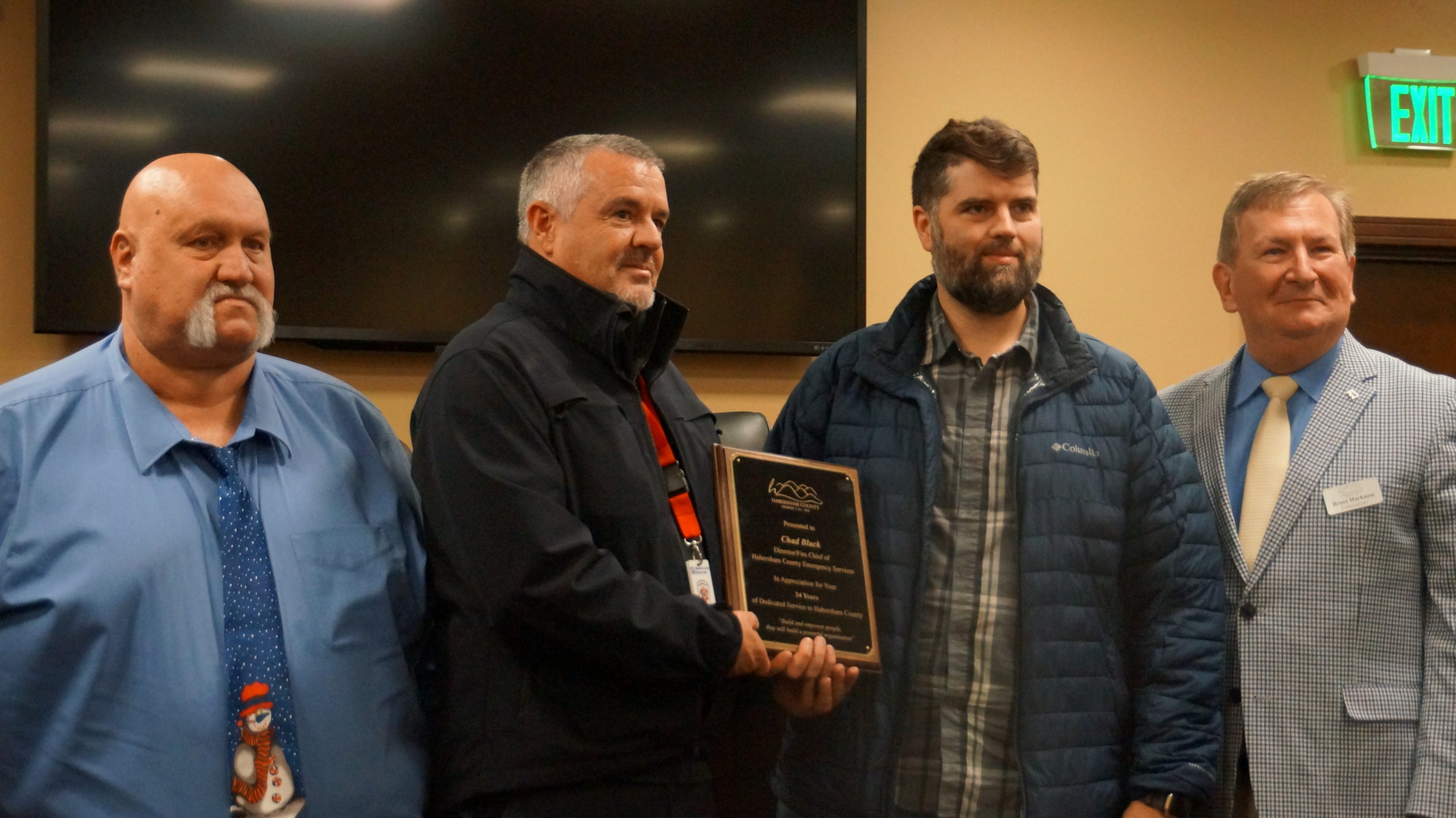 The Habersham County Board of Commissioners honored Habersham County Emergency Services Director Chad Black with a service award on Monday night, celebrating his 34 years of service to Habersham County.
