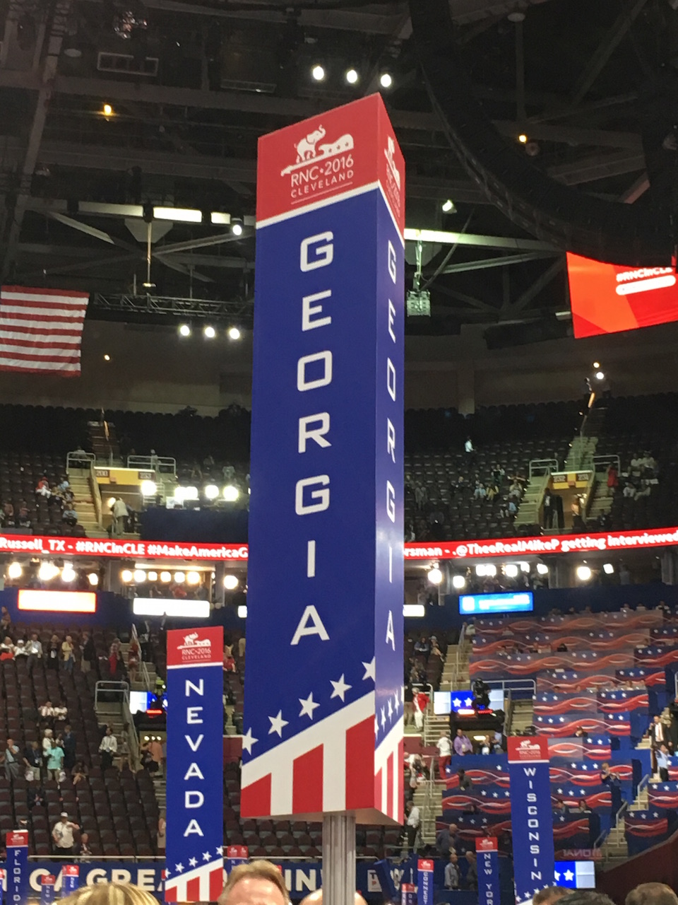 “It’s been great so far,” says Blackburn, who’s serving as an alternate with the Georgia delegation, “A lot of unity. The issues about protests and such, I haven’t seen one.” He dismisses national media reports of a delegate protest over convention rules. “That fizzled out after a few minutes. They put their face in front of the camera and then sat down or left.”