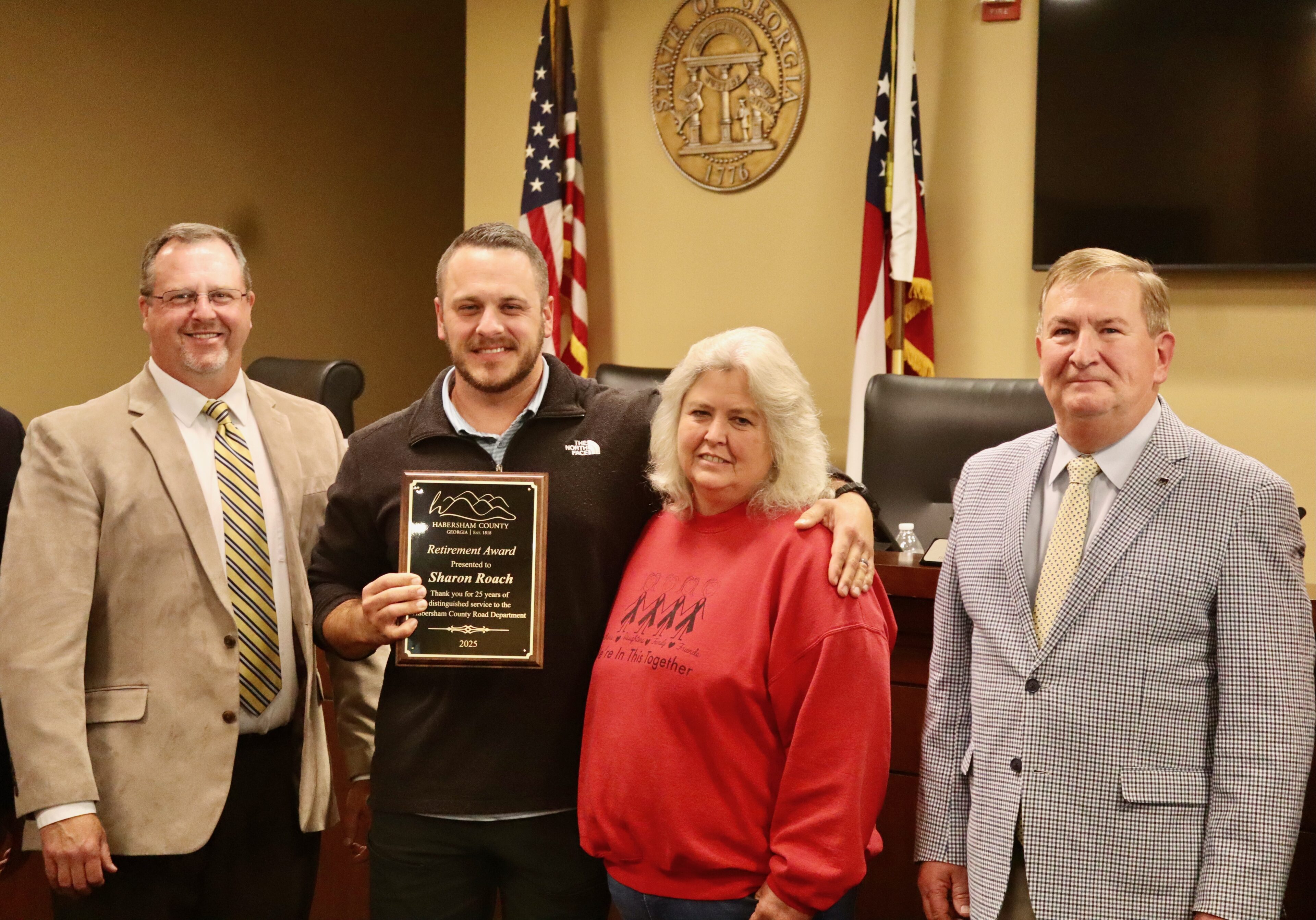 Sharon Roach for 25 years of dedicated service to the road department,” Sims said. “Her unwavering commitment, skill and work ethic have left a lasting impact on our county’s infrastructure and the quality of life in our community.”