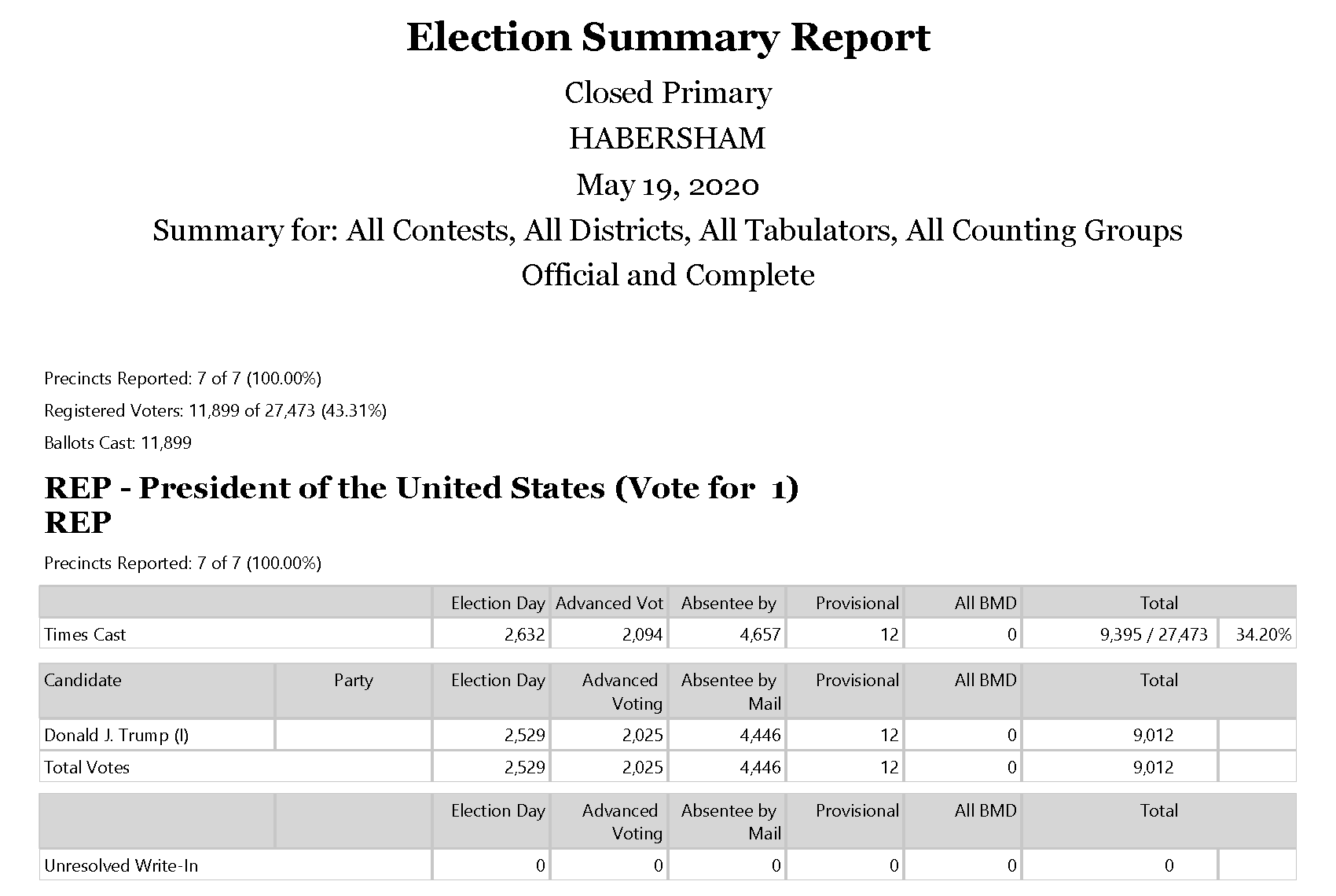 Here are the Official & Complete June 9th 2020 Primary Election Results for Habersham County: