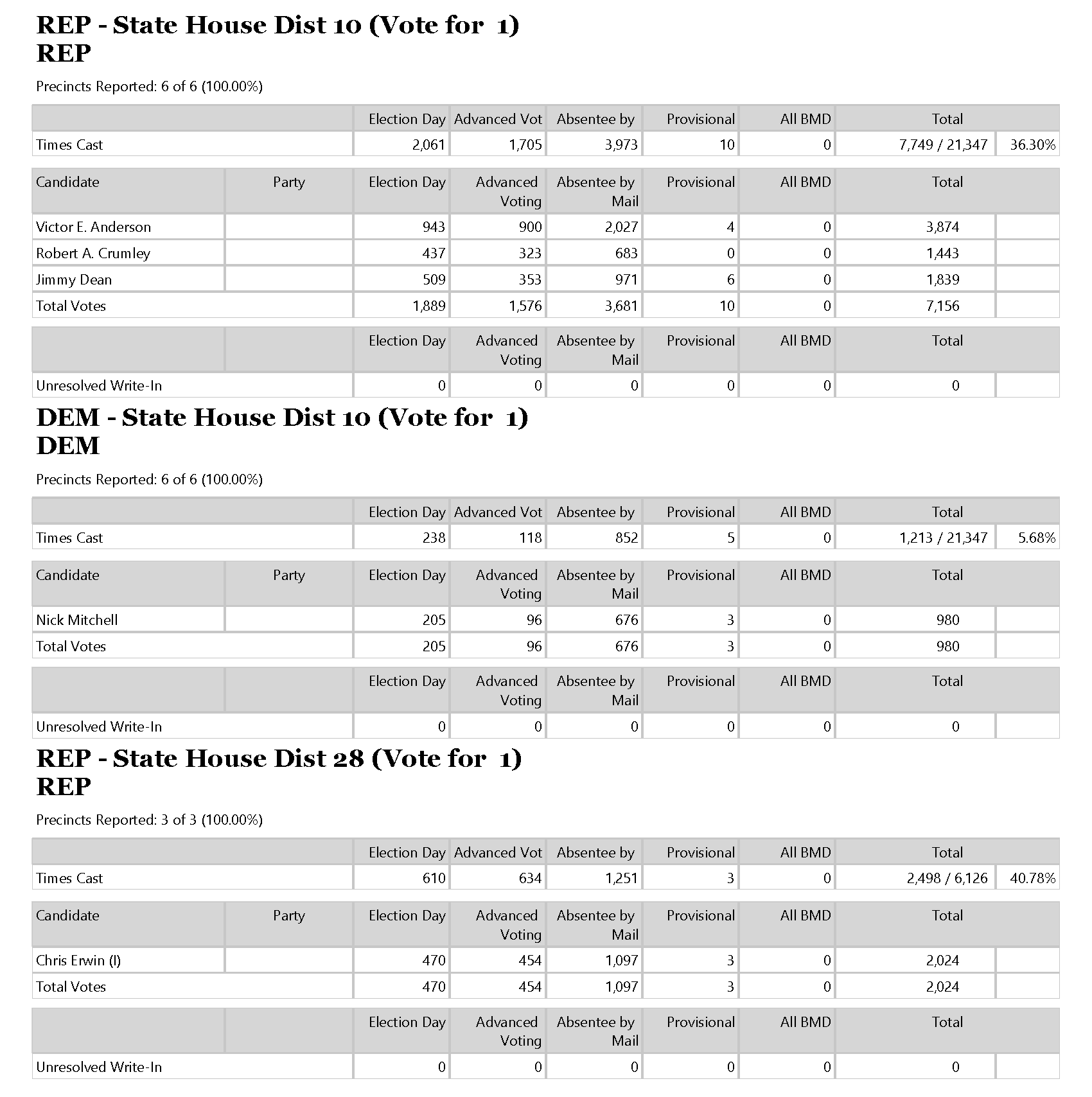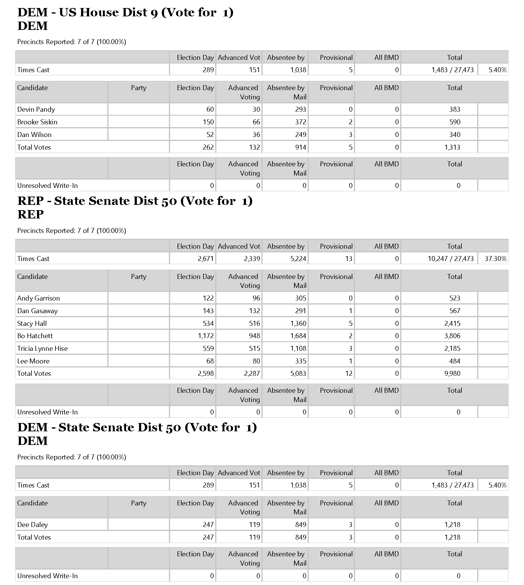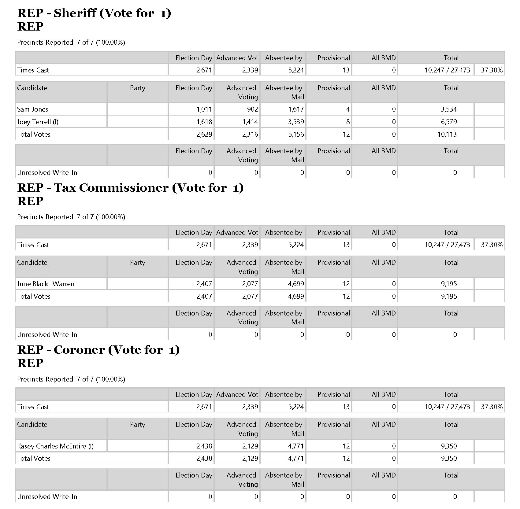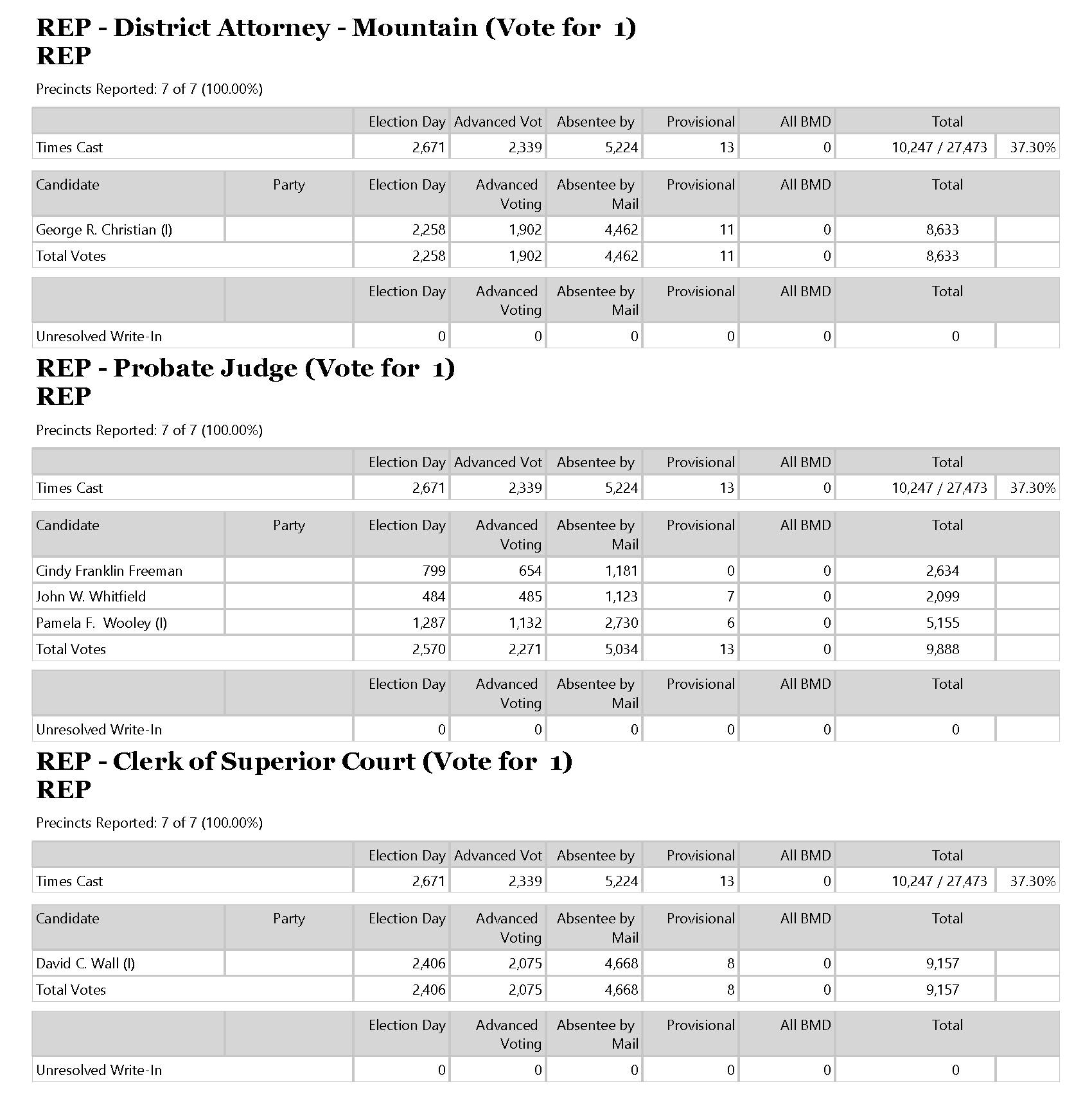 The Habersham County Elections Office tonight released the final results of the June 9 primary.