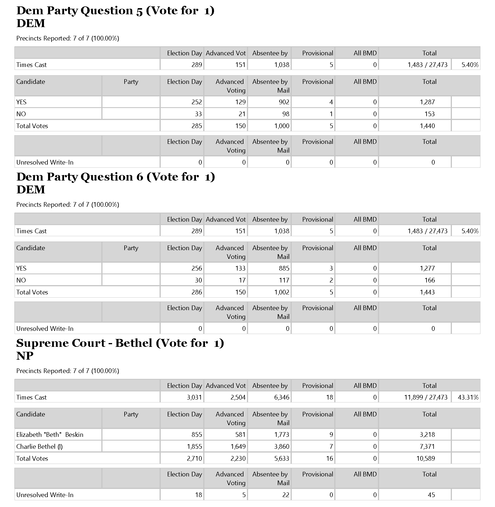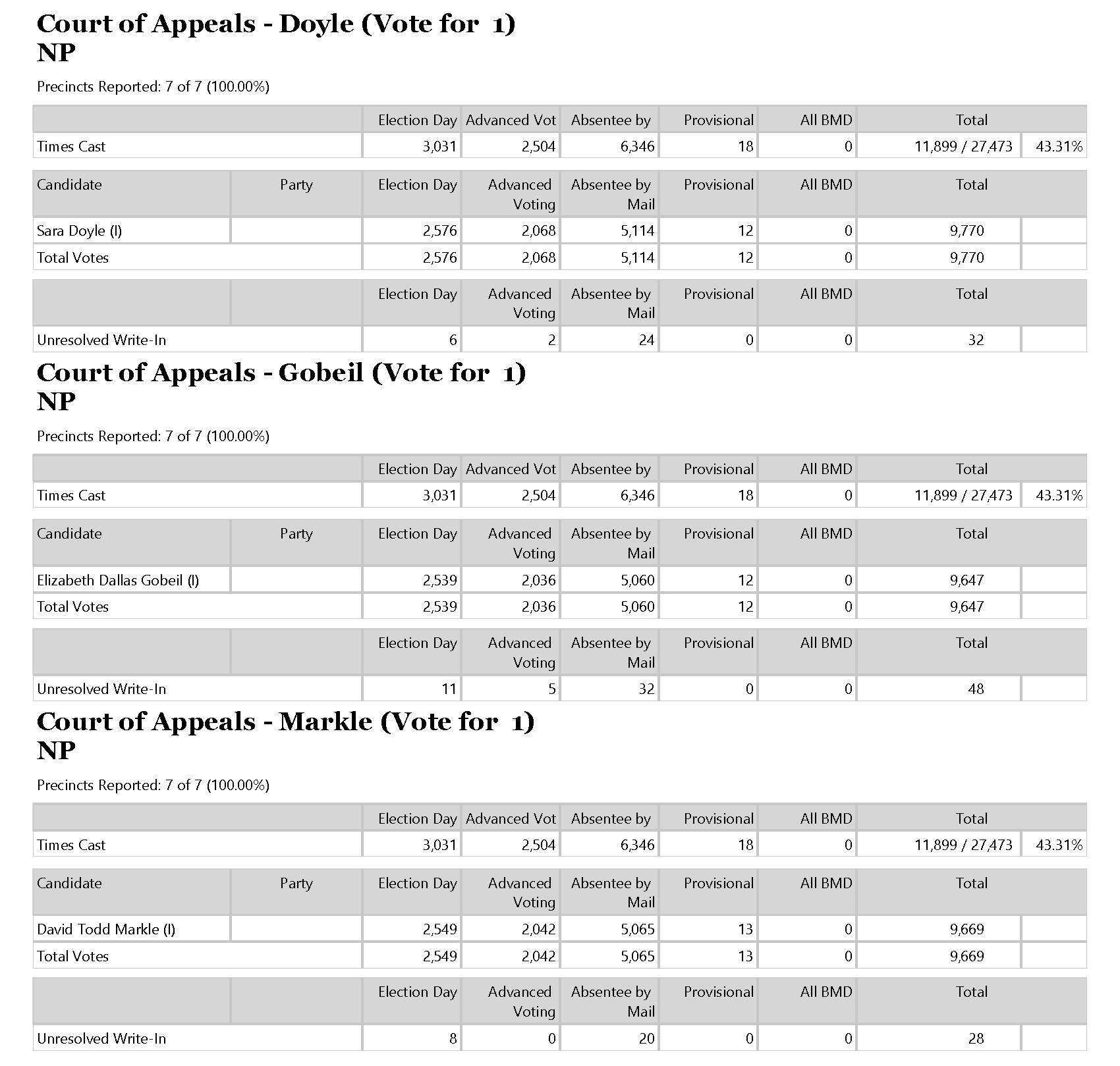 The results include twenty-two additional votes, eighteen of which came from provisional ballots and four absentees.