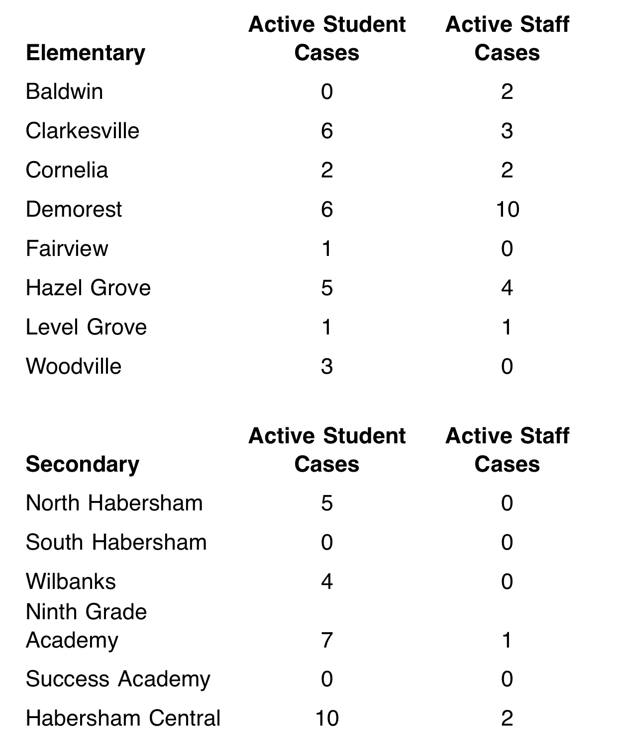 The Habersham County school district will not post current COVID-19 case data on its website. Those interested in accessing that information must contact Director Holcomb or their child’s school principal. The information is updated weekly and is available upon request, Cooper says.